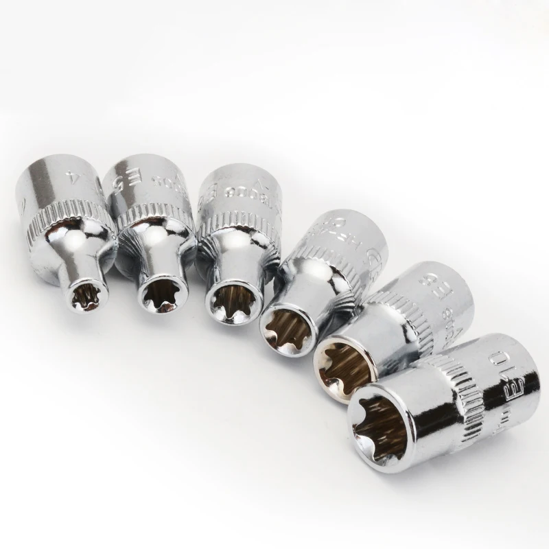 6 шт. 1/4 "6,35 мм E4-E10 торкс набор гнезд CR-V E-type гаечный ключ головка шестигранный гаечный ключ набор ключей авто инструменты для ремонта