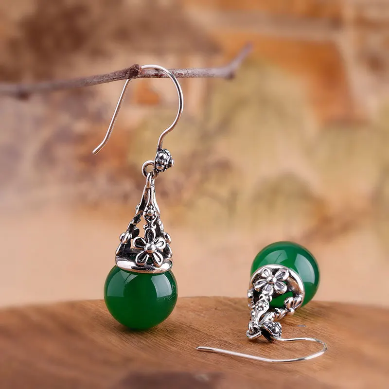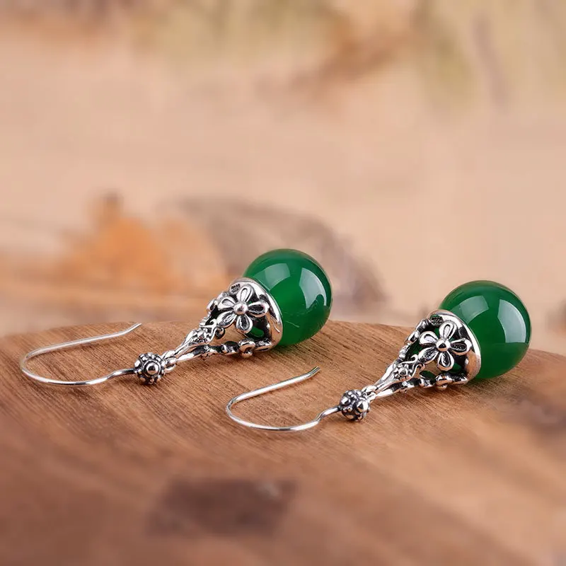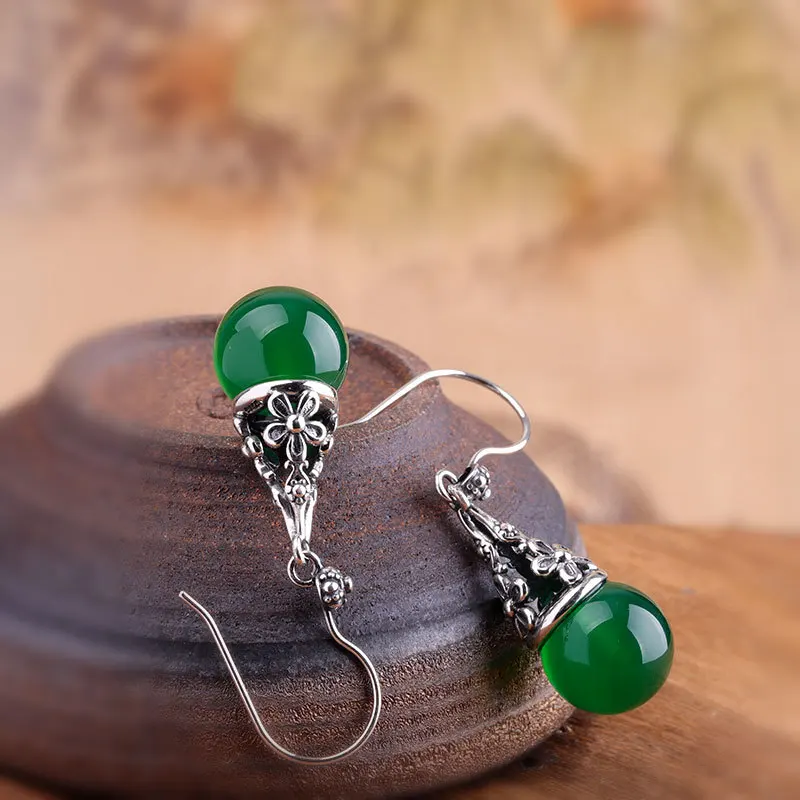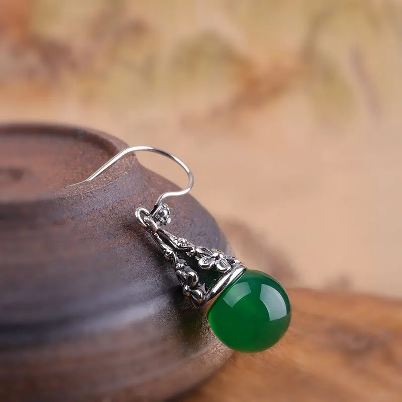 Женские серьги из серебра 100% пробы, с натуральным нефритом