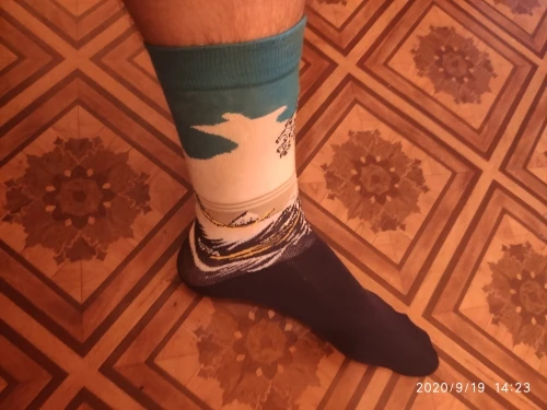 Носки плотные,рисунок четкий, доставка больше месяца.