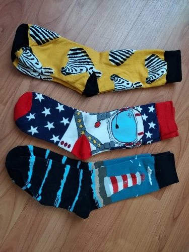 Эти носки абсолютно Потрясающие! Яркие цвета, очень удобные, очень хорошее качество, плотная и прочная ткань! Я рекомендую их для европейских размеров 38-40. Я не думаю, что они будут удобны для размеров 41 +. Доставка занимает некоторое время, но это нормально и стоит того.