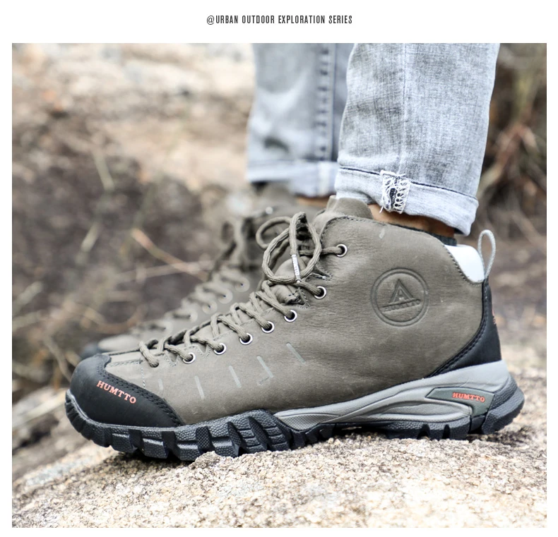 Мужские ботинки на шнуровке HUMTTO, зимние водонепроницаемые повседневные ботинки из натуральной кожи, Нескользящие уличные кроссовки большого размера