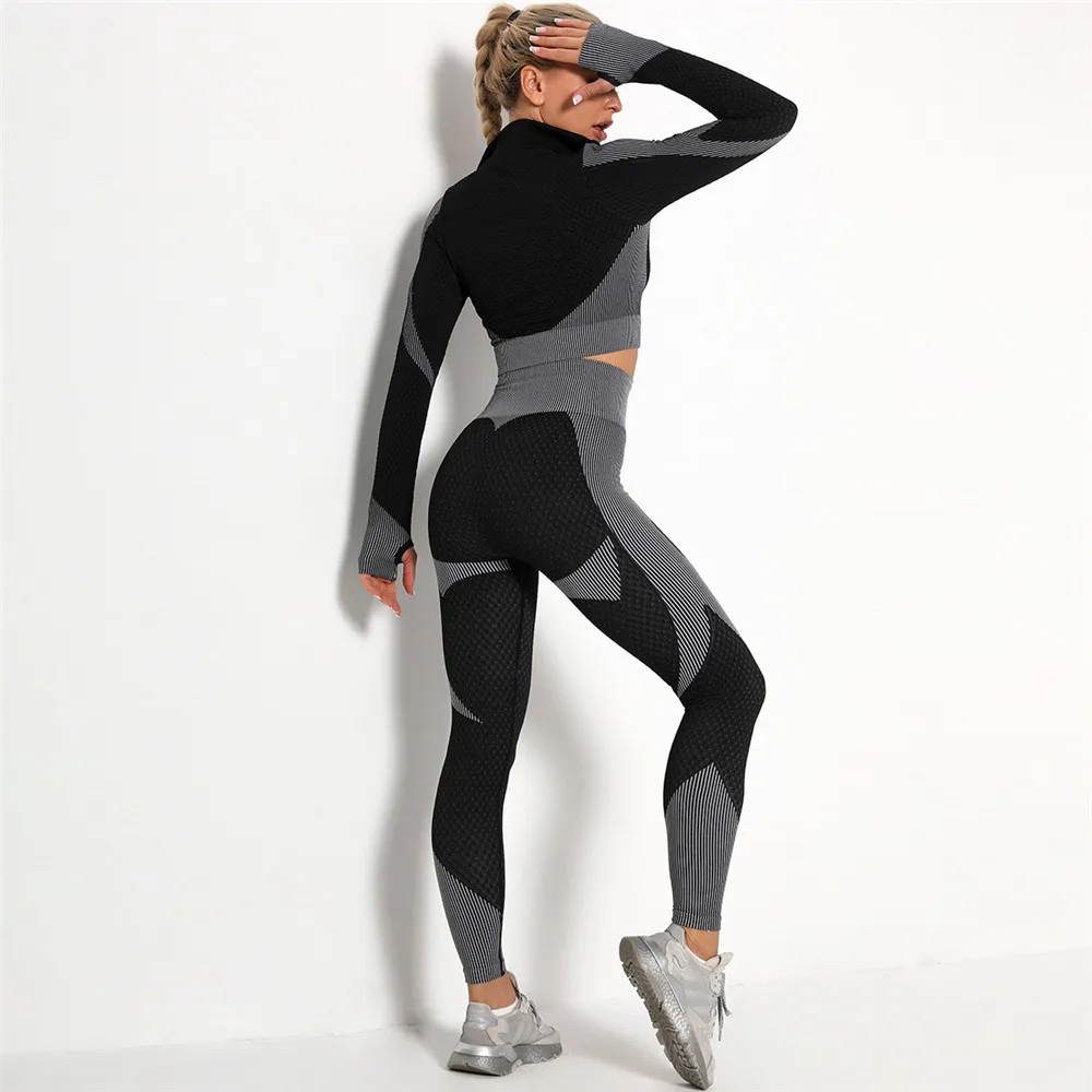 23 Бесшовные женские комплекты для йоги, женские спортивные костюмы для тренажерного зала, одежда для бега, женская одежда для фитнеса, одежда для йоги с длинным рукавом