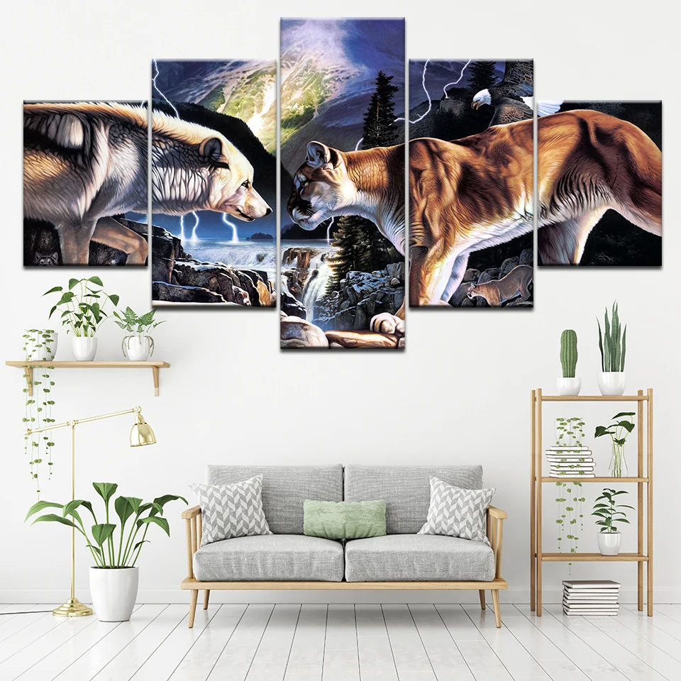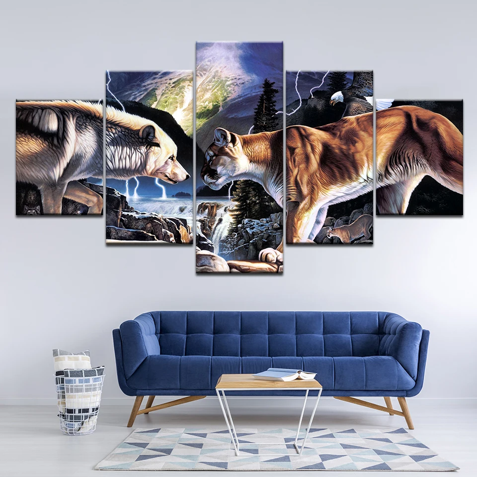 Лев и Волк тигр настенные художественные плакаты Печать холст Картина животное скандинавский плакат холст картины для гостиной Декор художественное оформление
