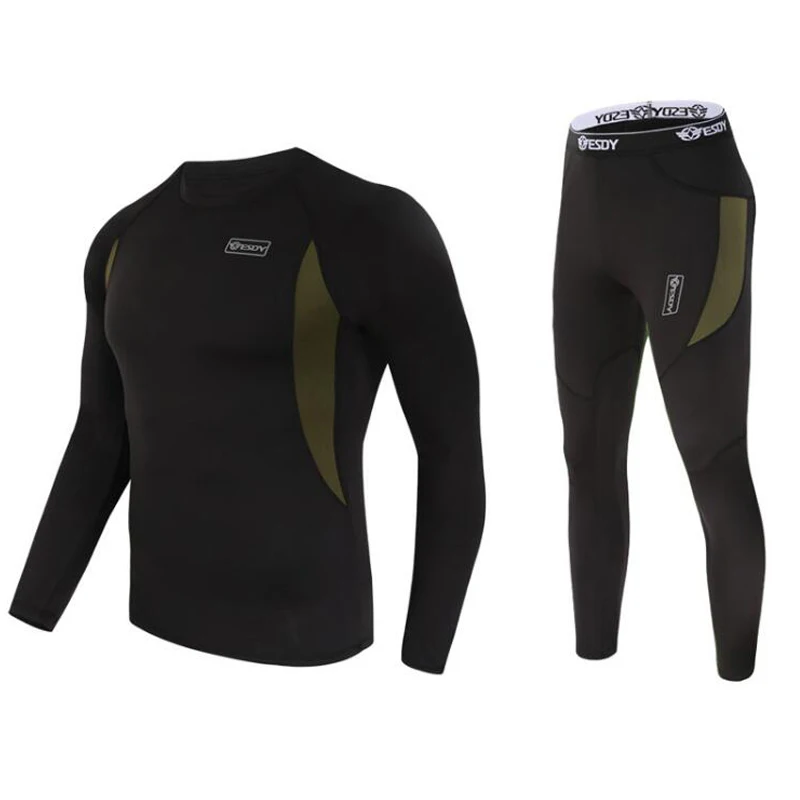 Термобелье, мужские кальсоны, спортивный костюм, уличные спортивные флисовые теплые дышащие эластичные быстросохнущие термоштаны, комплект