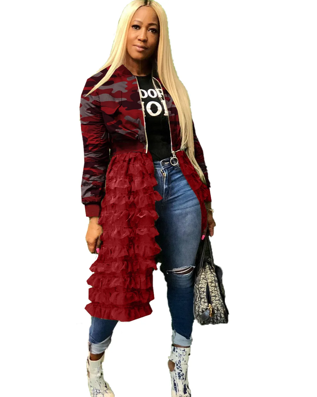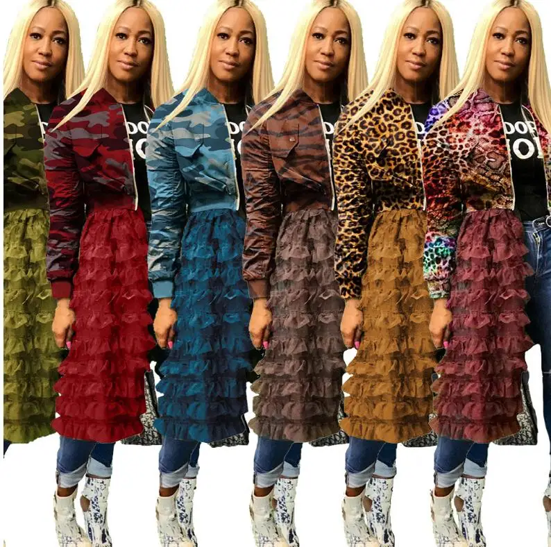 1L072 осенне-зимняя женская куртка, пальто с камуфляжным принтом, сетчатые Лоскутные Повседневные Длинные куртки наивысшего размера плюс