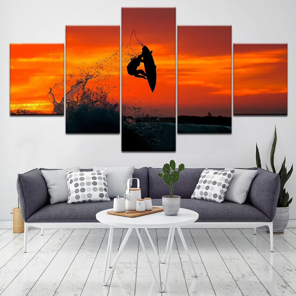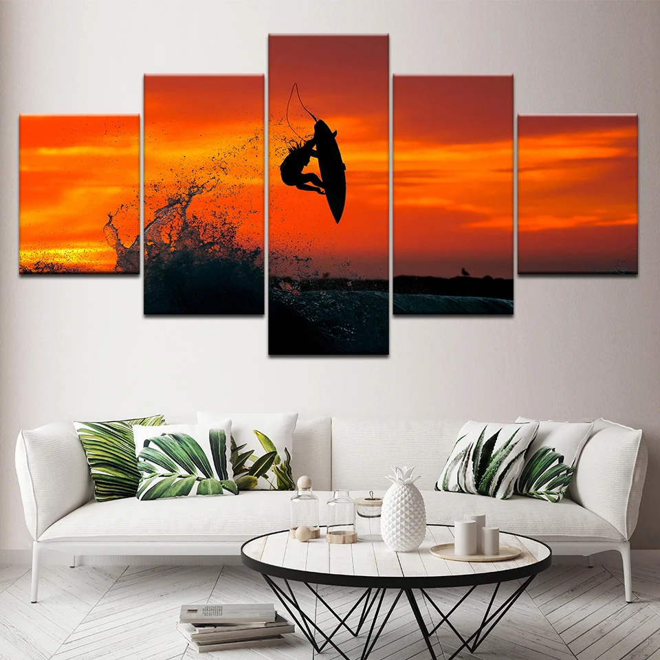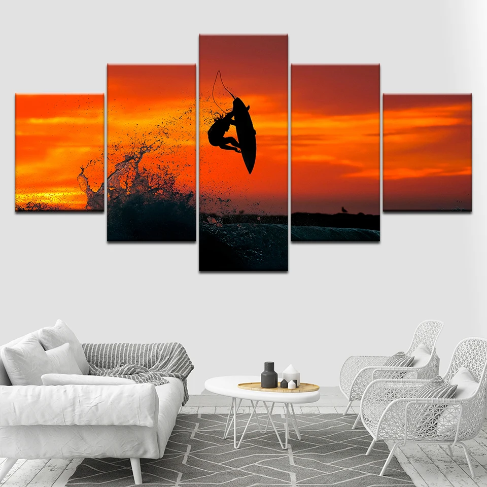 Печатные плакаты, настенная Модульная картина, холст для серфера, художественное украшение для дома, 5 шт., современные картины для серфинга в гостиной, художественные работы