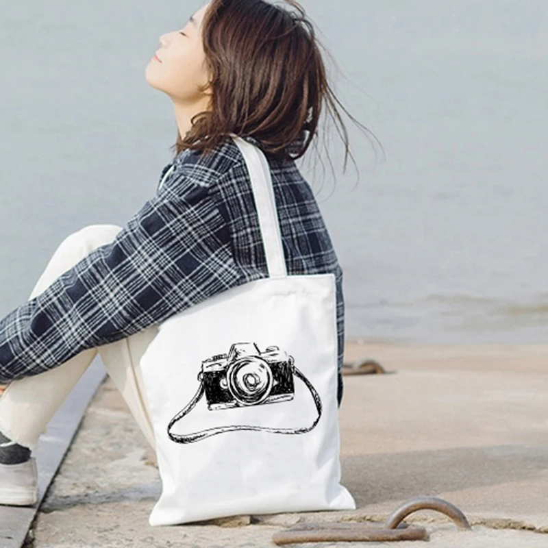 Модная многоразовая сумка для покупок с принтом камеры, винтажная д...