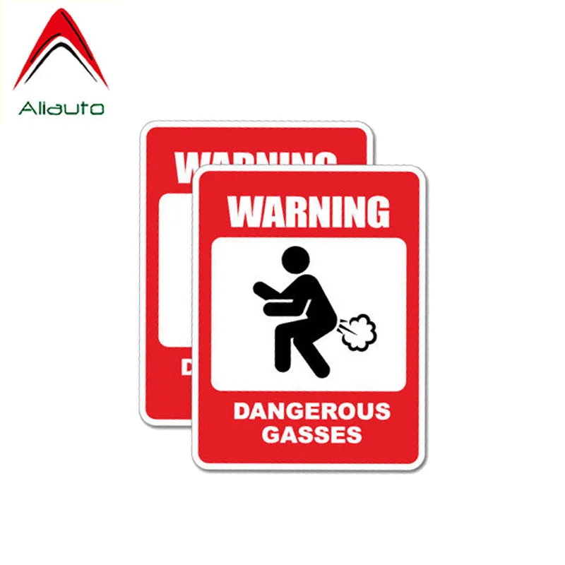 2 x Aliauto забавная наклейка для автомобиля, персональное предупреждение, опасные газы, ПВХ наклейка для Volkswagen Renault Mitsubishi Lada, 7 см * 9 см