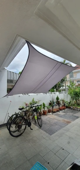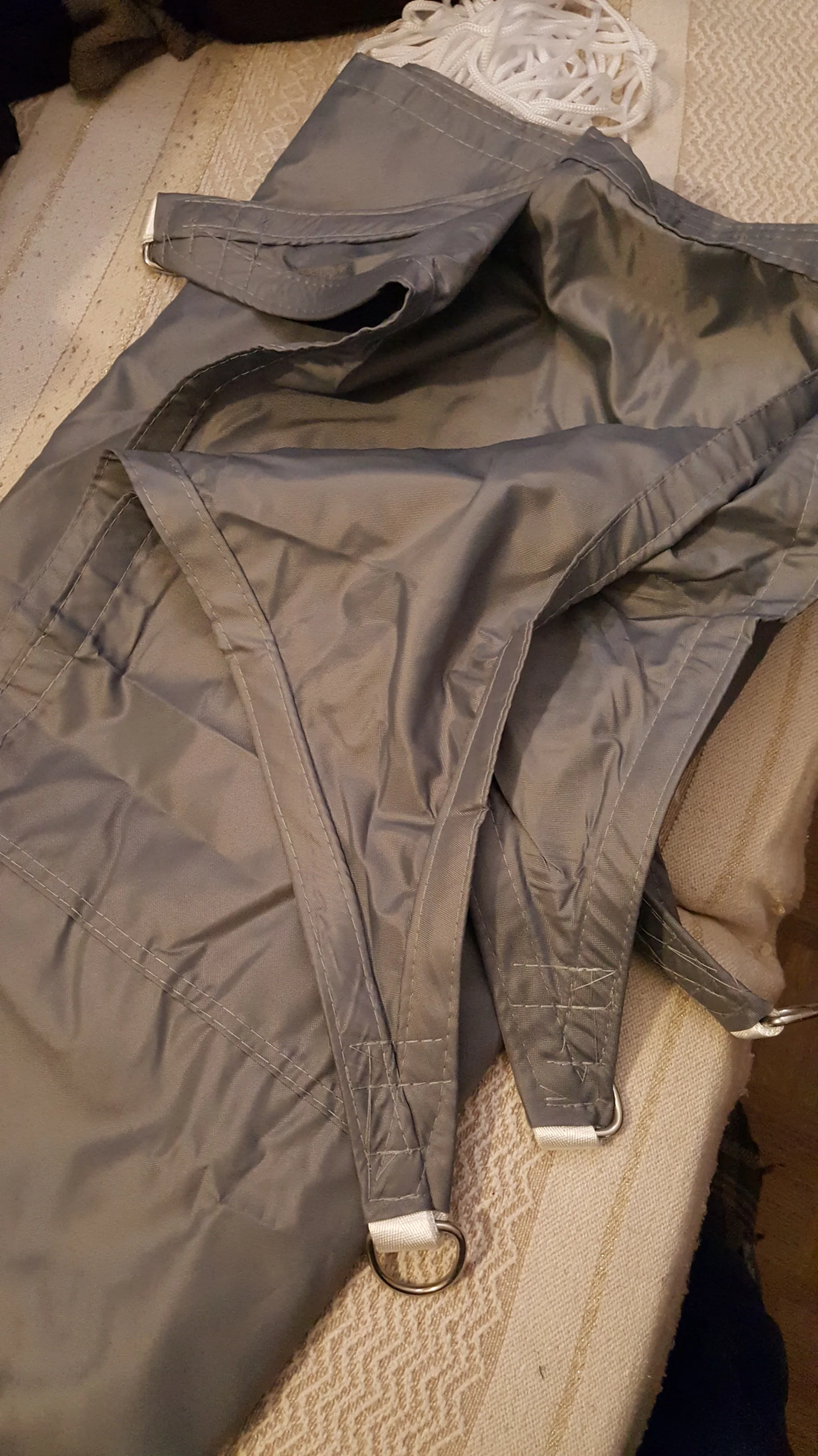 После дождя материал дал себя посередине из-за веса воды, и он был настолько размыт, что он опускался ниже головы, сверло, которое у меня было раньше (холст) это никогда не случалось с ним.