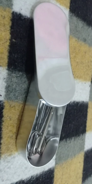 немного помята, не сталь,легкосплав,похож на алюминий,для стерелезаций не подходит