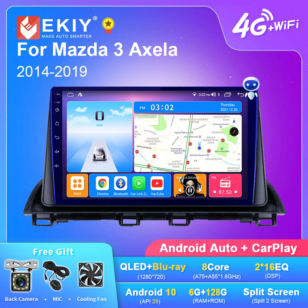 Автомагнитола EKIY T7 на Android для Mazda 3 Axela 2014-2019 автомобильный мультимедийный видеоплеер с GPS-навигацией стерео 2din Carplay QLED DSP