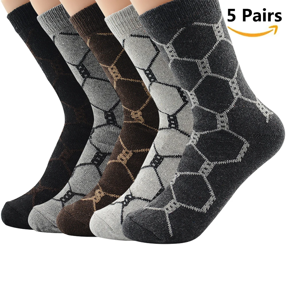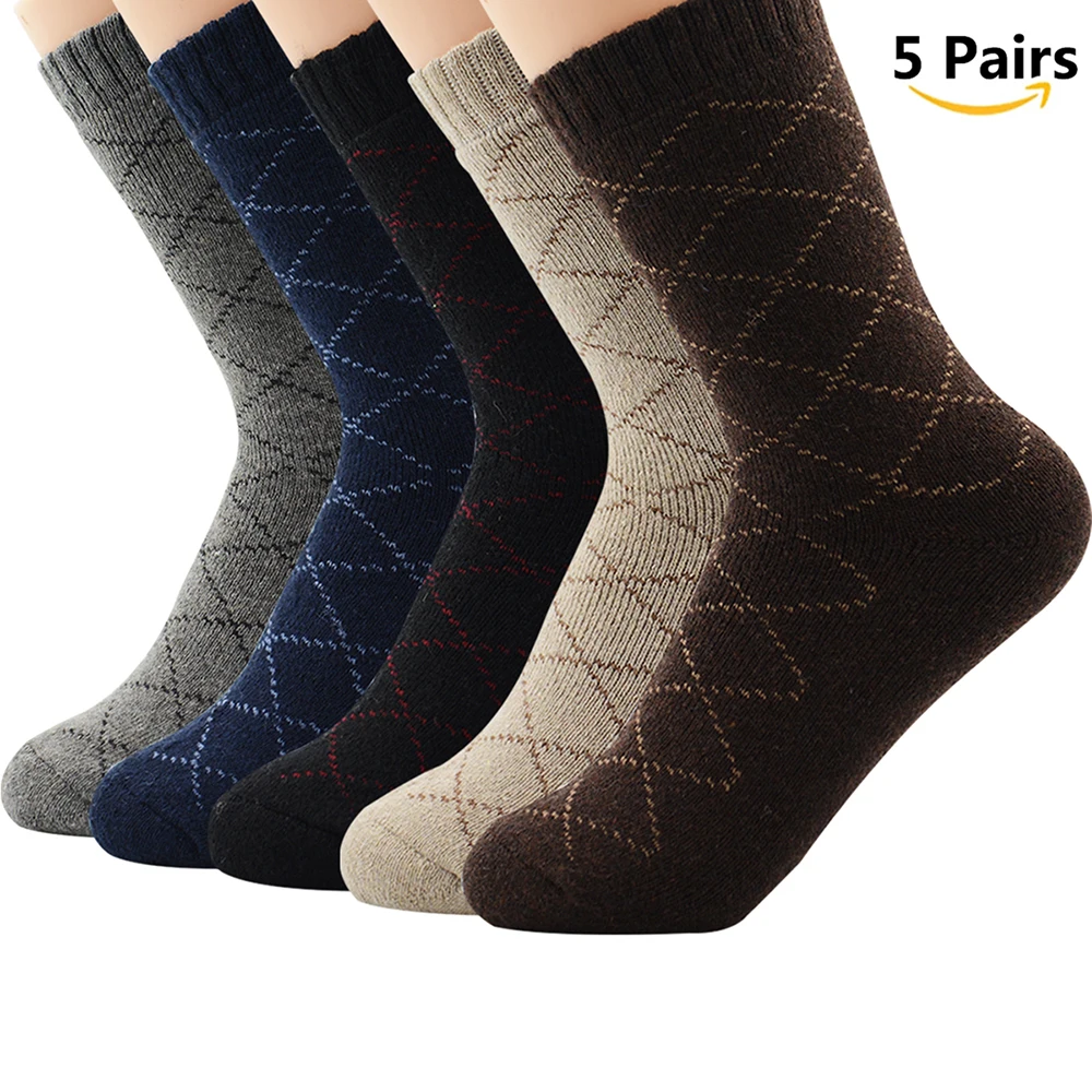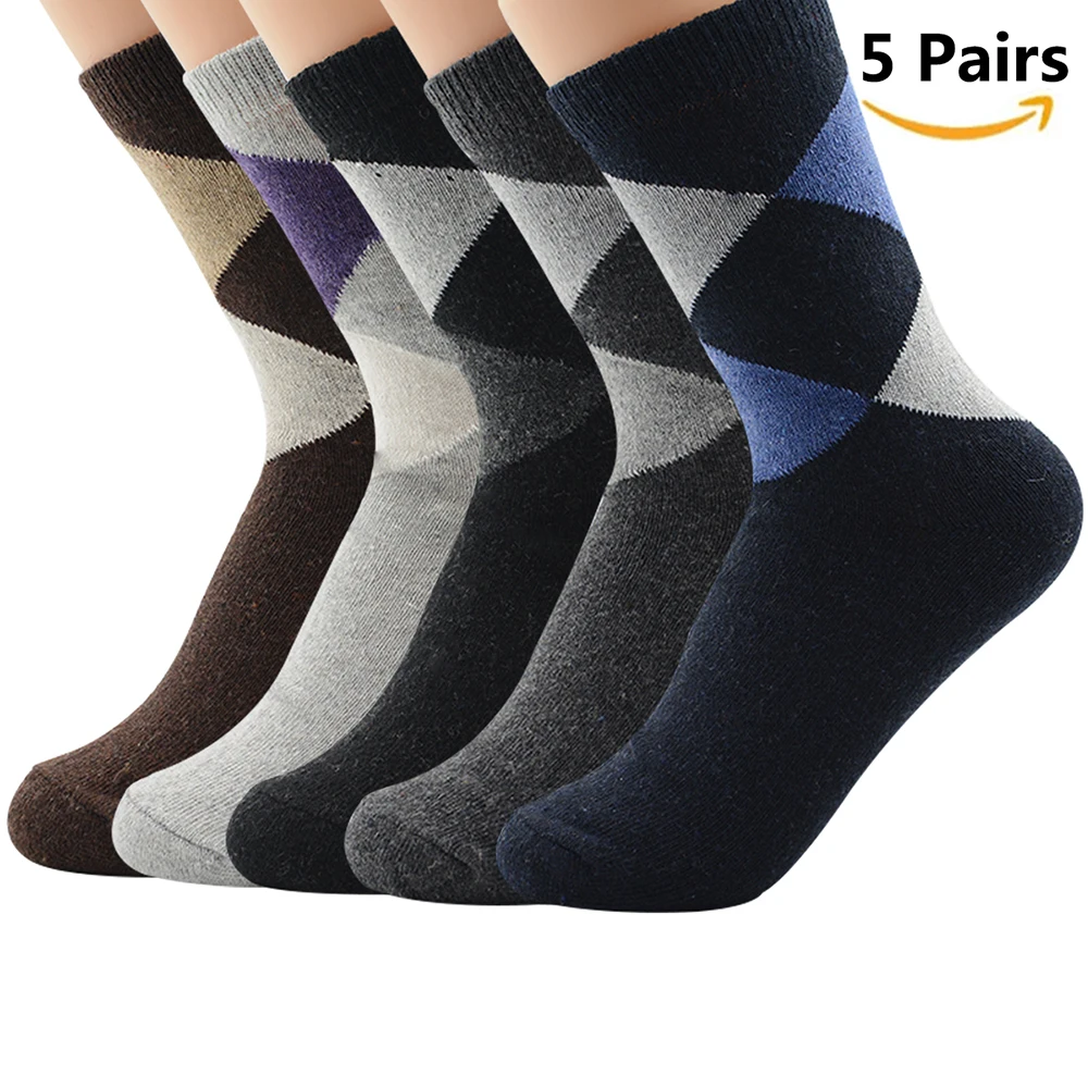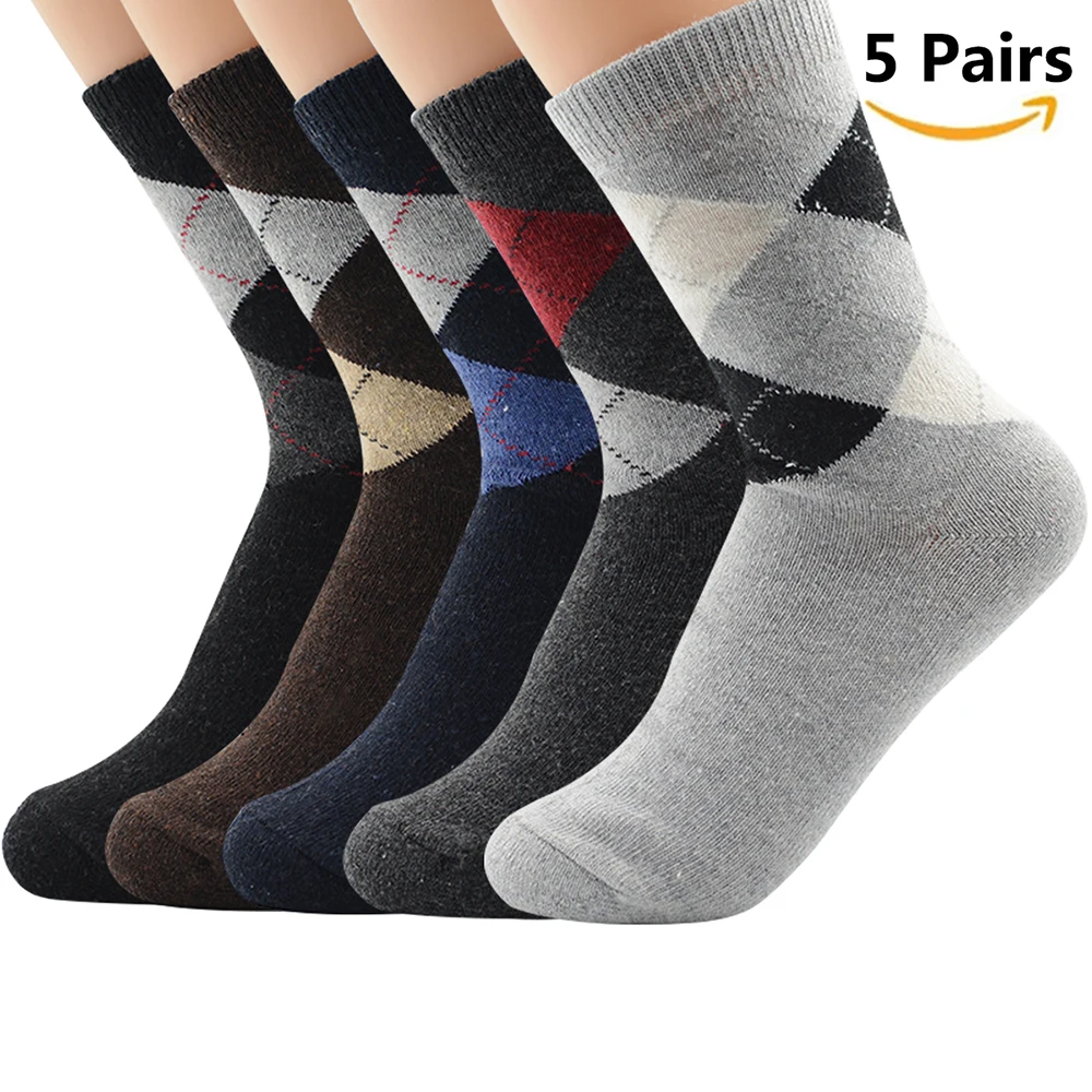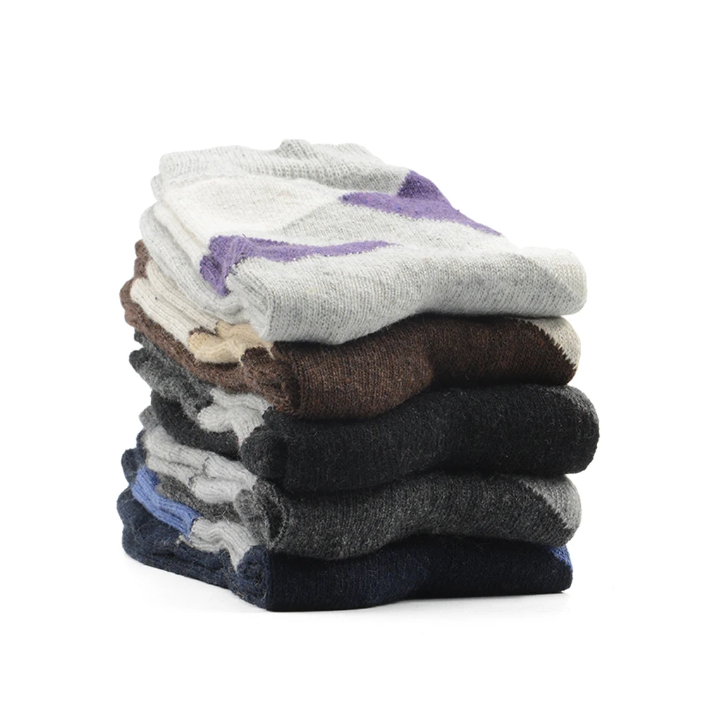 Мужские носки, шерсть, хлопок, повседневные, высокое качество, бриллиантовый узор, мужские носки, зимние, толстые, теплые, 5 пар, счастливые, дышащие мужские носки