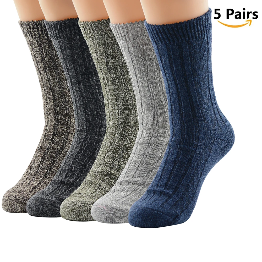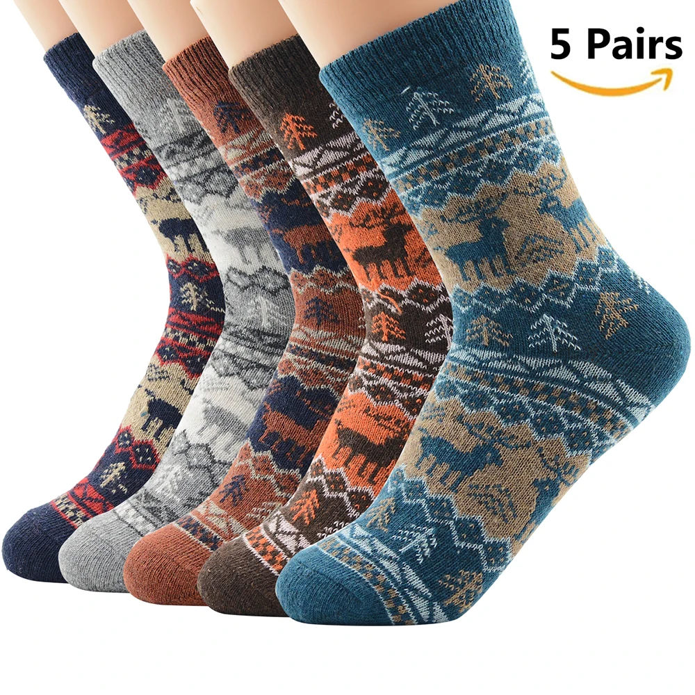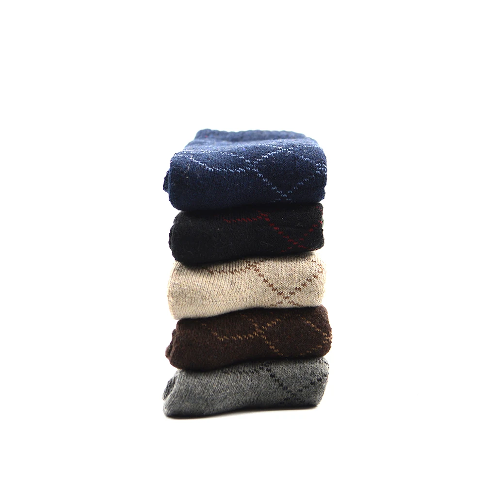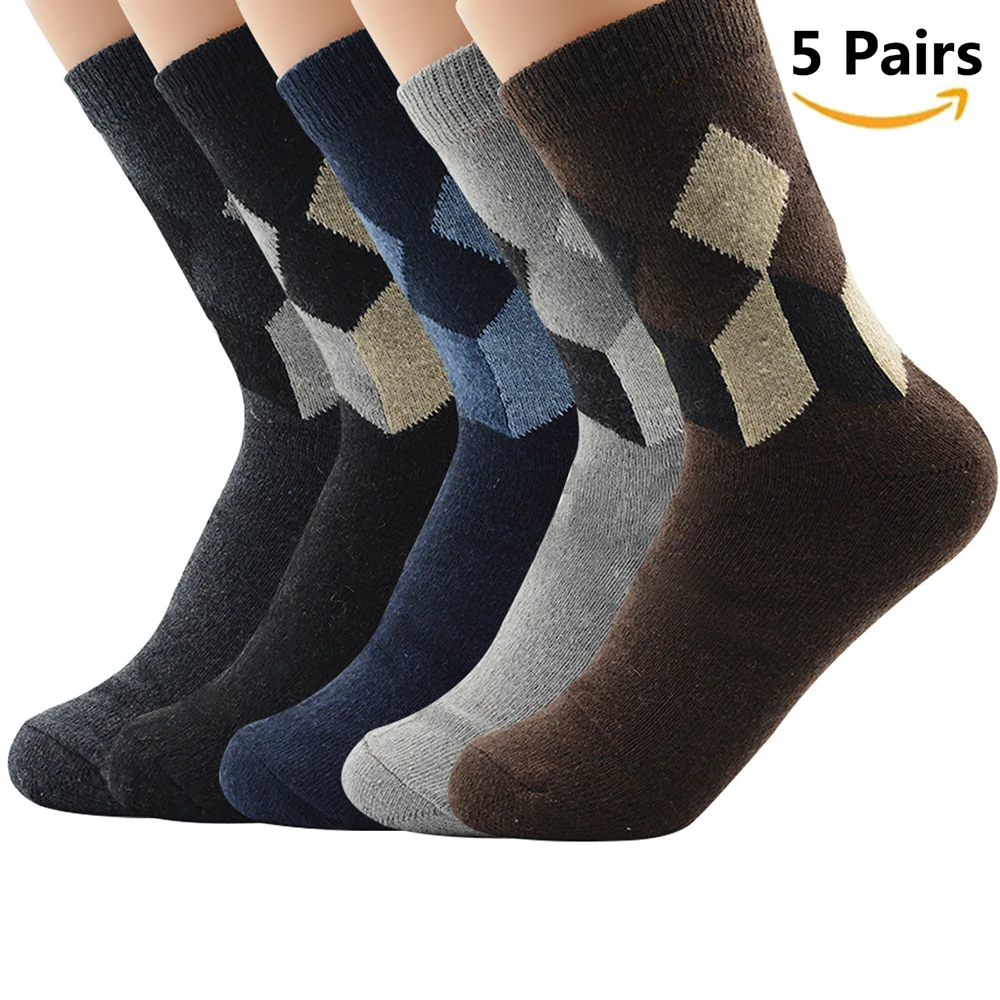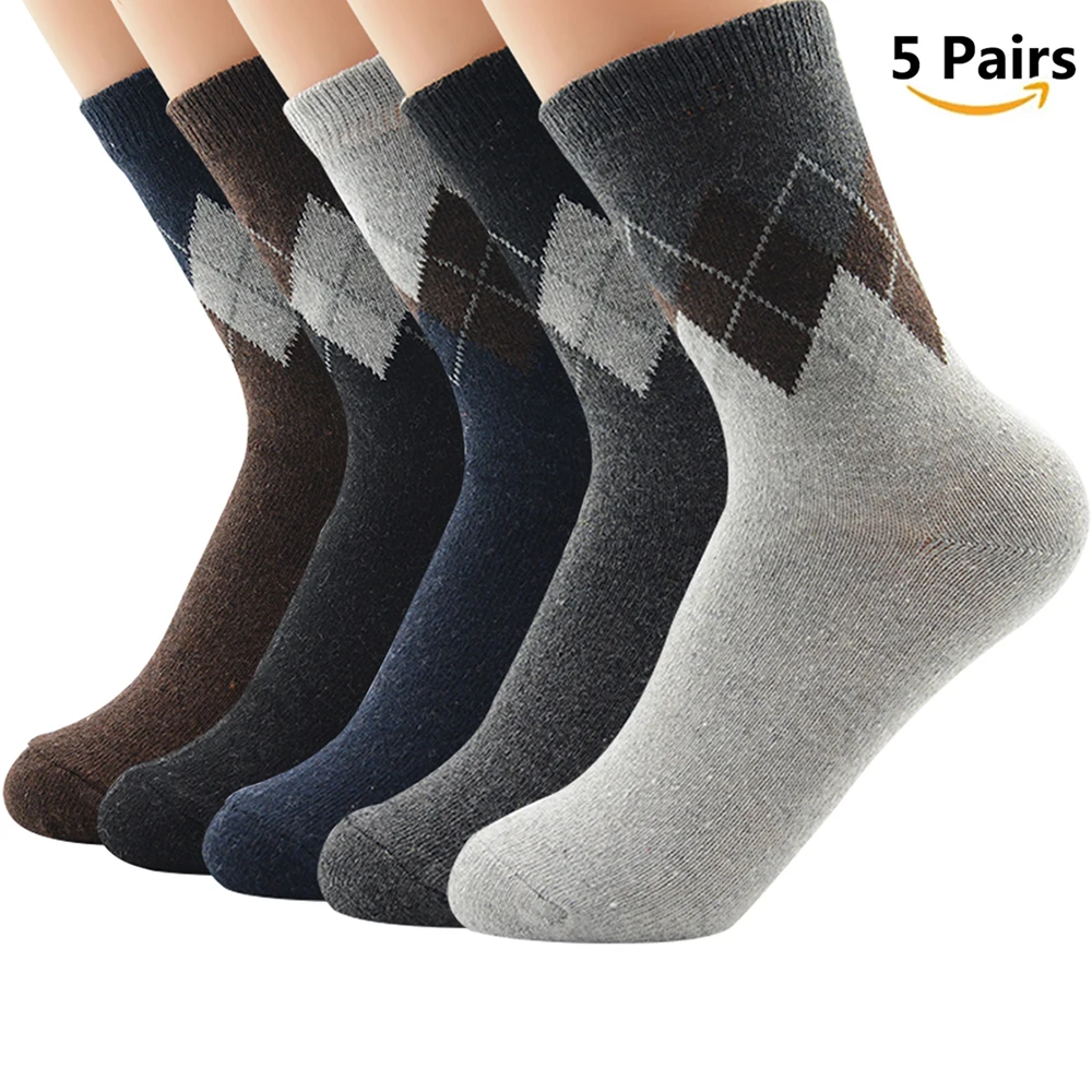 Мужские носки, шерсть, хлопок, повседневные, высокое качество, бриллиантовый узор, мужские носки, зимние, толстые, теплые, 5 пар, счастливые, дышащие мужские носки