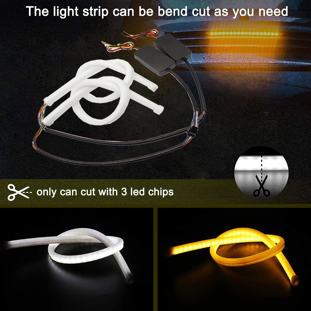 Дневные ходовые огни PAIEIMAI, гибкие, 30 см, 45 см, 60 см, 2 шт.