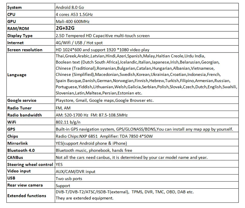 2G Оперативная память 32G Встроенная память 10,1 дюймов Android 8,1...