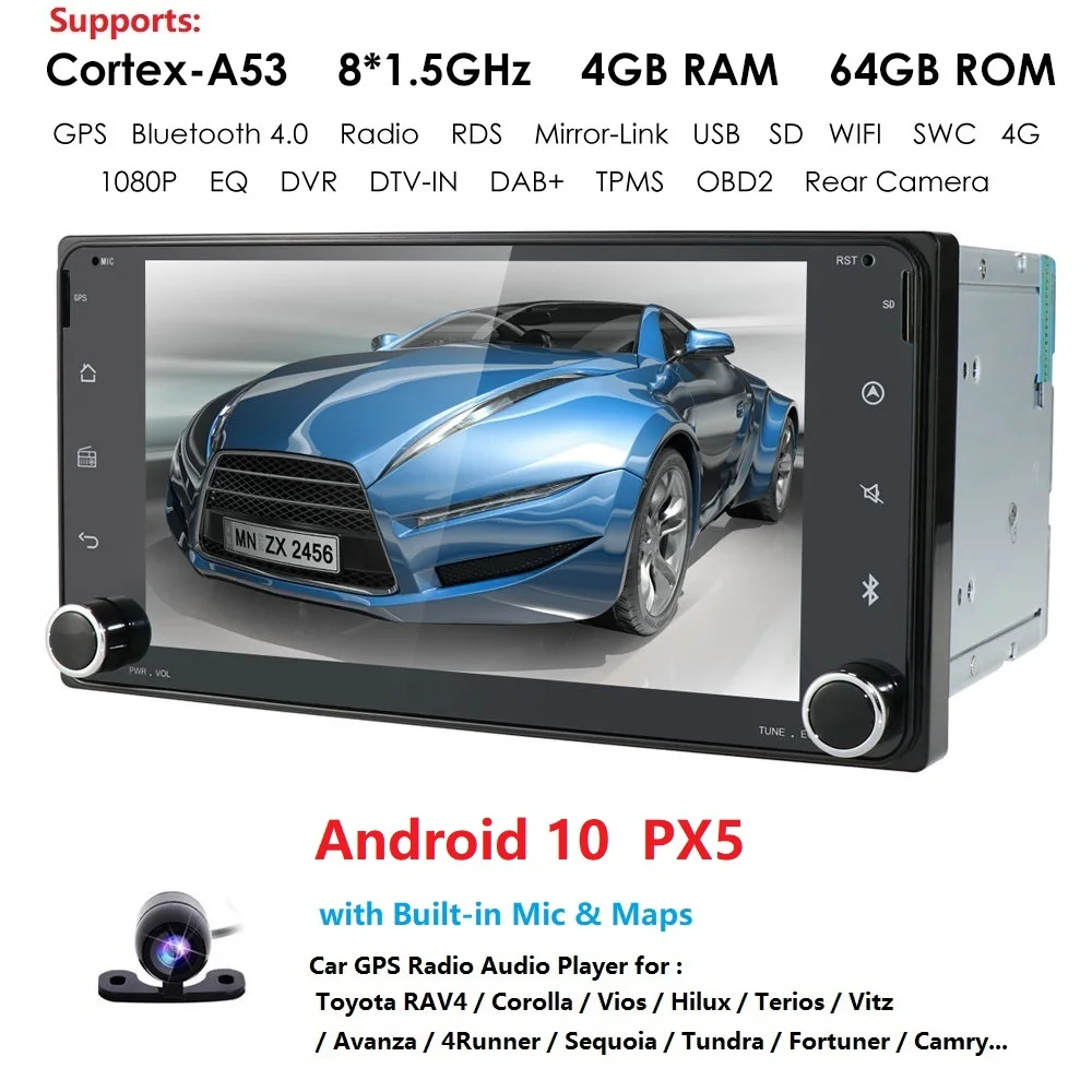 Автомагнитола 2 din, мультимедийный видеоплеер с GPS-навигацией, Android 10,0, 4 Гб + 64 ГБ, DSP, для Toyota Camry, Terios, Hilux, Vios, 4runner, Rav4
