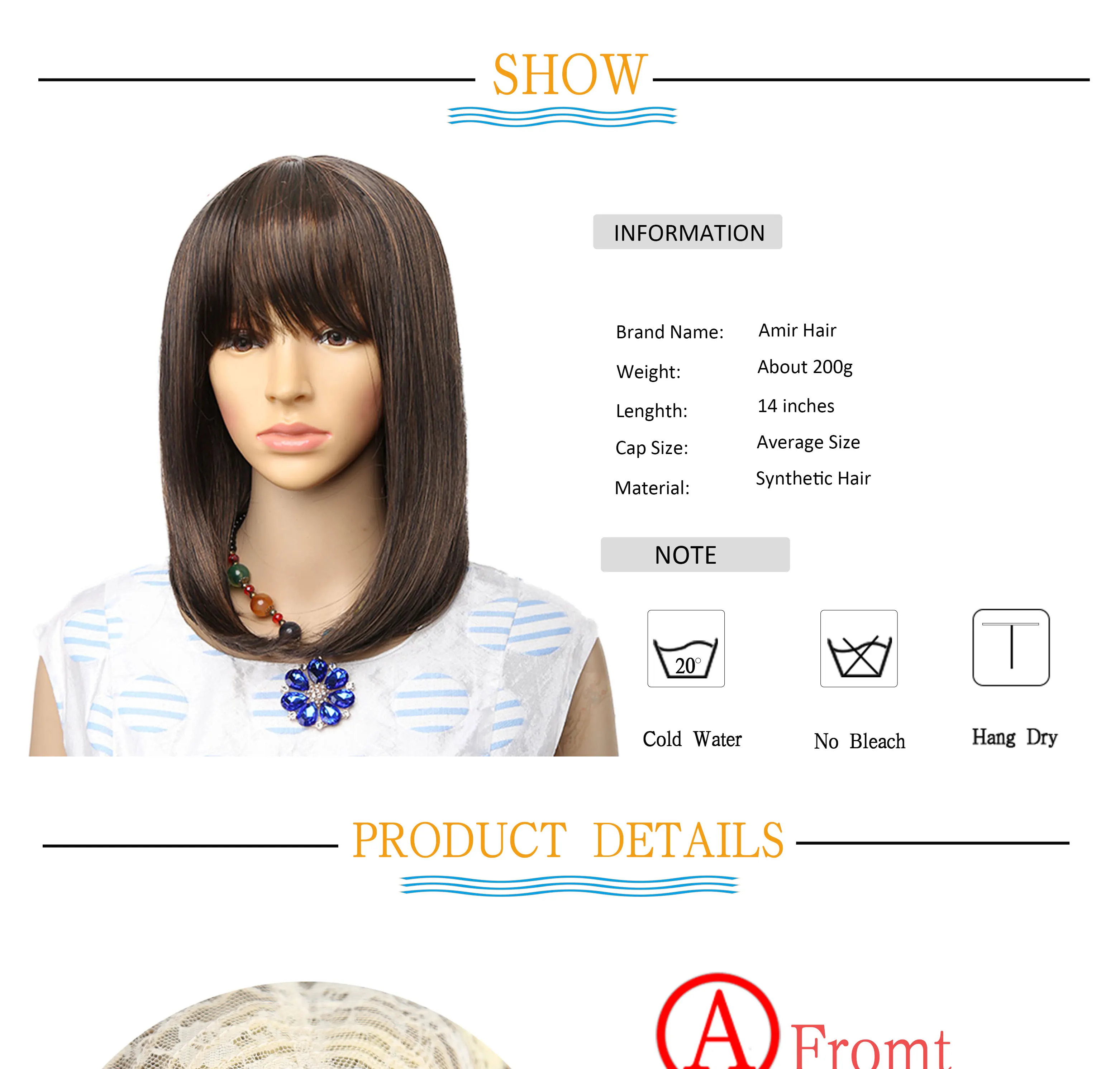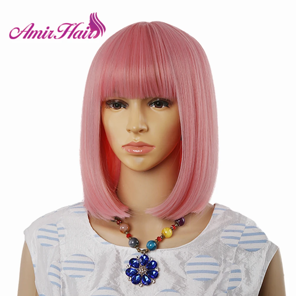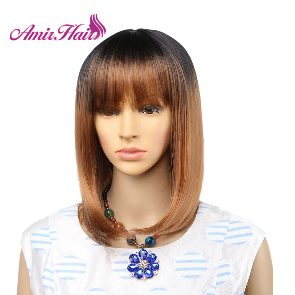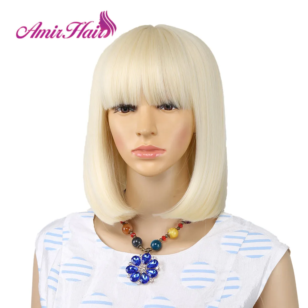 Короткие прямые синтетические парики Amir с челкой для черно-белых женщин, термостойкий парик из волокна для косплея, искусственные волосы