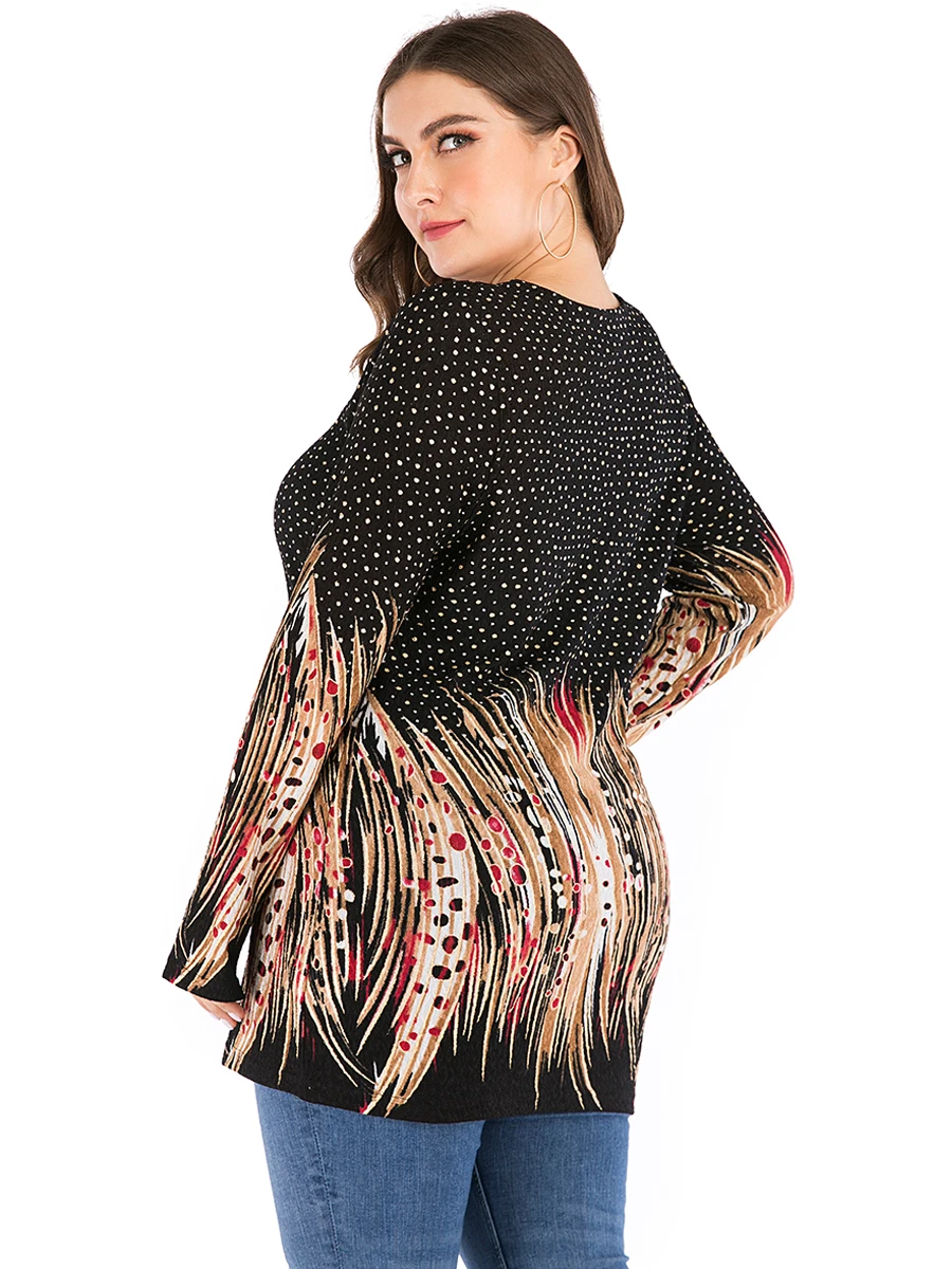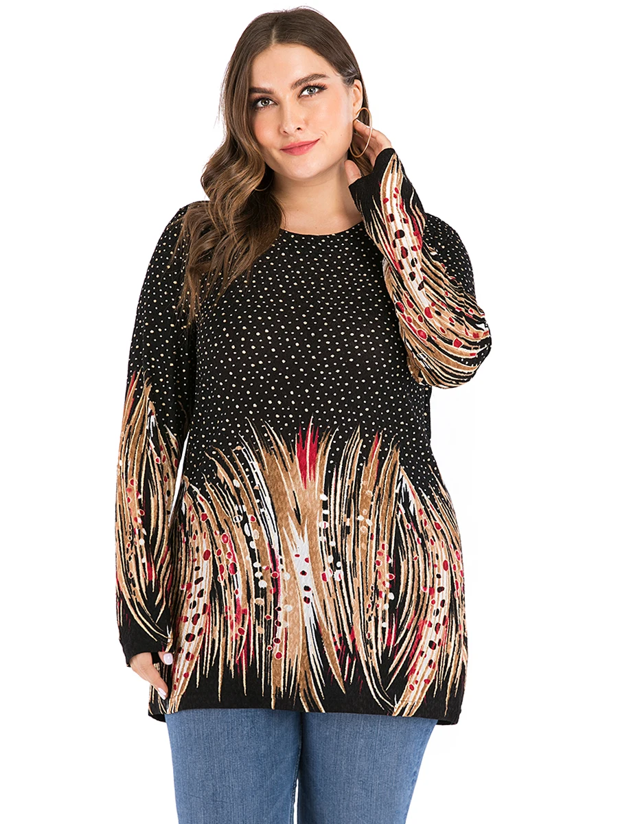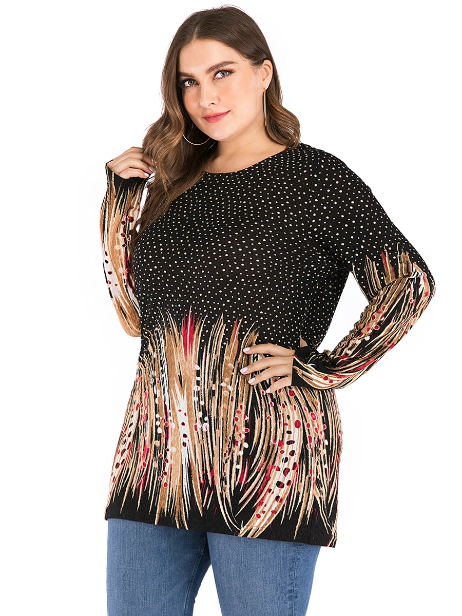 2021 осенне-зимняя блузка с длинным рукавом, с круглым вырезом, в горошек, в полоску, Повседневная Длинная блуза, Женская туника