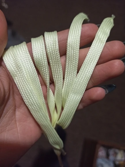 отличные шнурки, если под лампой подержать будут отлично светиться. только они короткие, но мне такие и нужны были. товар соответствует на 100%