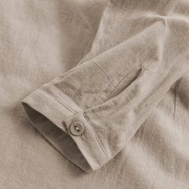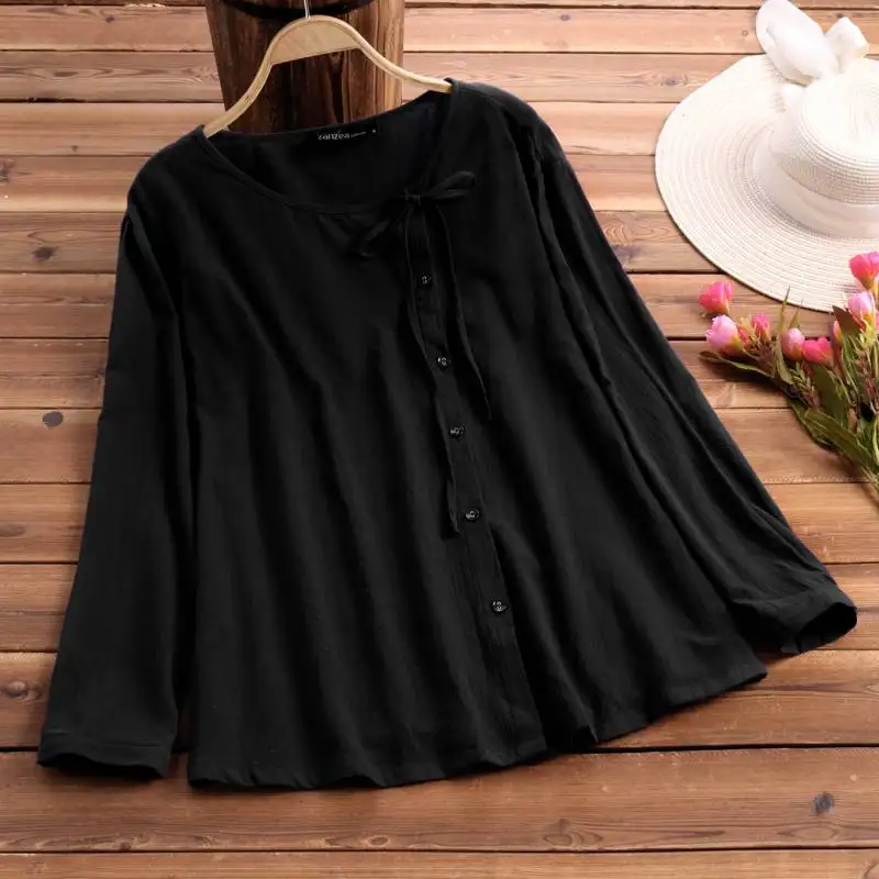 Винтажная блузка из хлопка и льна, с длинным рукавом, на пуговицах