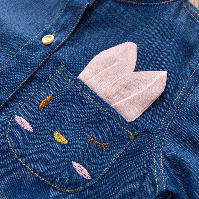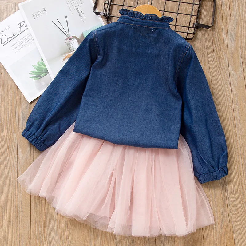 Платье для девочек с аппликацией в виде кошки осенне-зимняя джинсовая футболка с сетчатой юбкой Костюмы из 2 предметов для девочек детская одежда