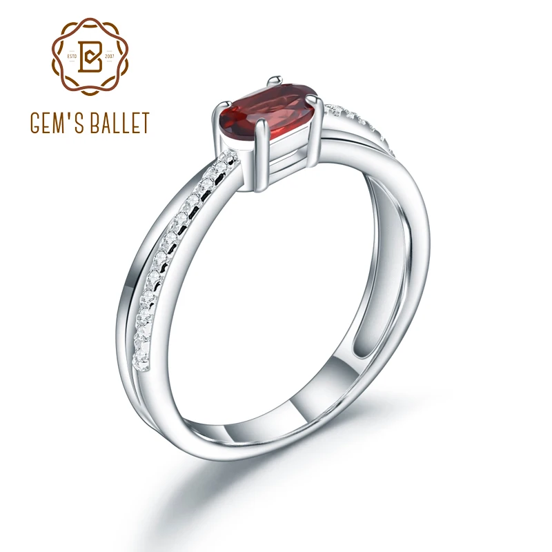 Кольцо женское из серебра 925 пробы, с натуральным красным гранатом