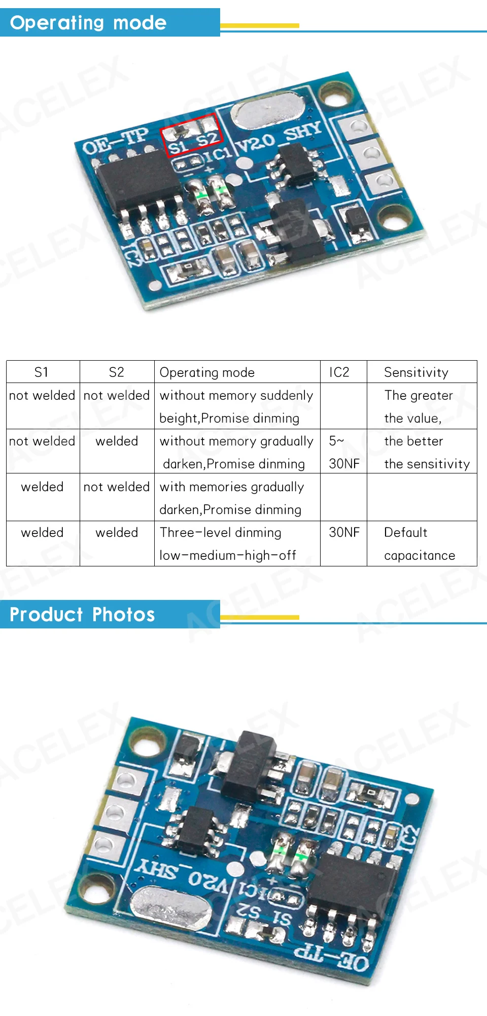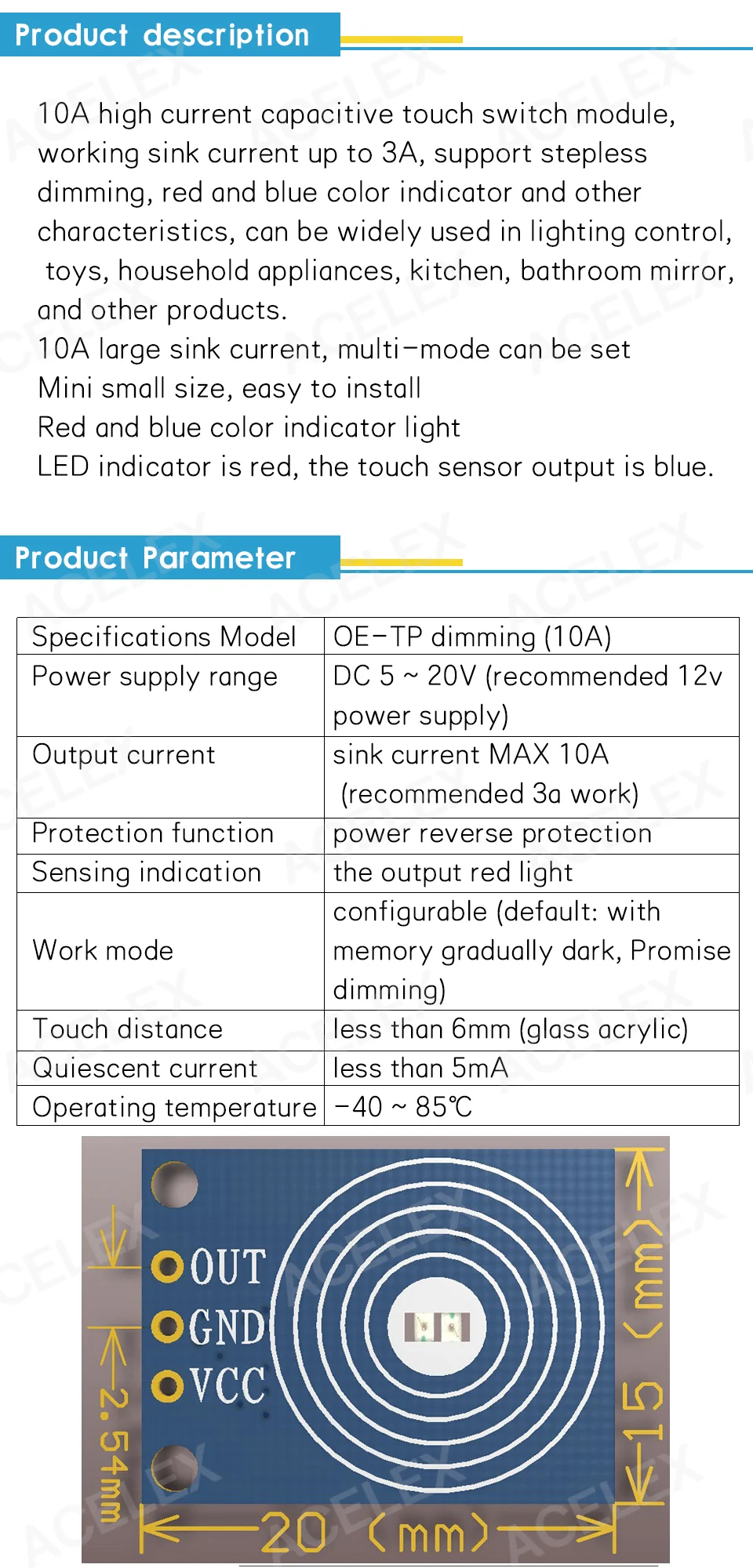 Модуль Сенсорного выключателя OE-TP, цифровой светодиодный сенсорный датчик без полюса, затемнение, 10 А, 5-12 В постоянного тока