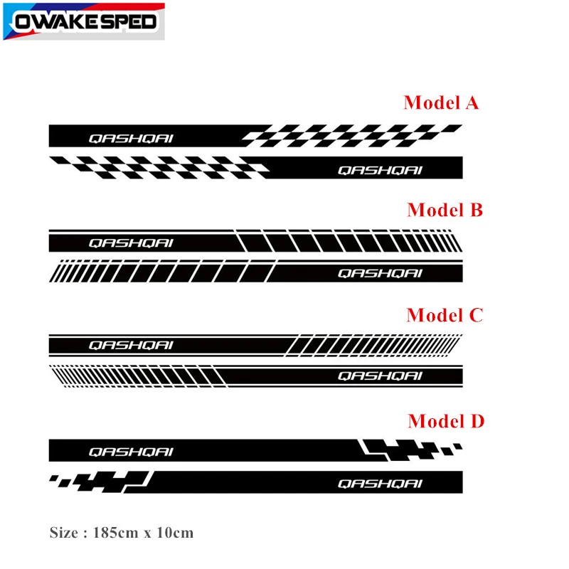 Двусторонние спортивные полосы для Nissan Qashqai J11 J10, наклейка на дверь кузова автомобиля, наклейка на юбку гоночного стиля, Виниловая наклейка, внешние аксессуары