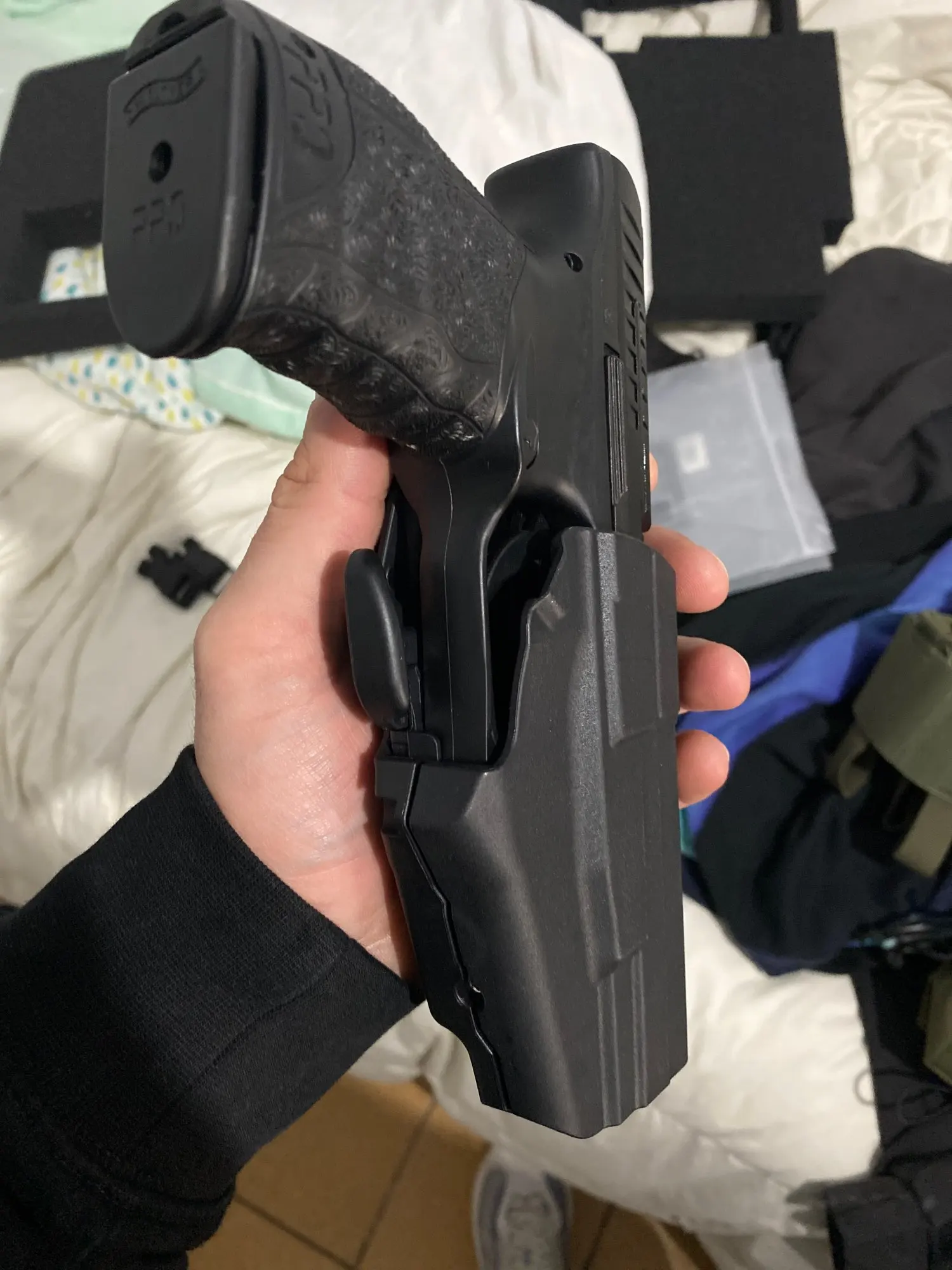 Холстер не подходит для моего Walther PPQ umarex, он не работает, пистолет не подходит к холстеру. Булавка, которую я показываю на втором фото, не двигается и не щелкает, когда я ставлю и вынимаю пистолет, надеюсь на ответ в ближайшее время, спасибо.