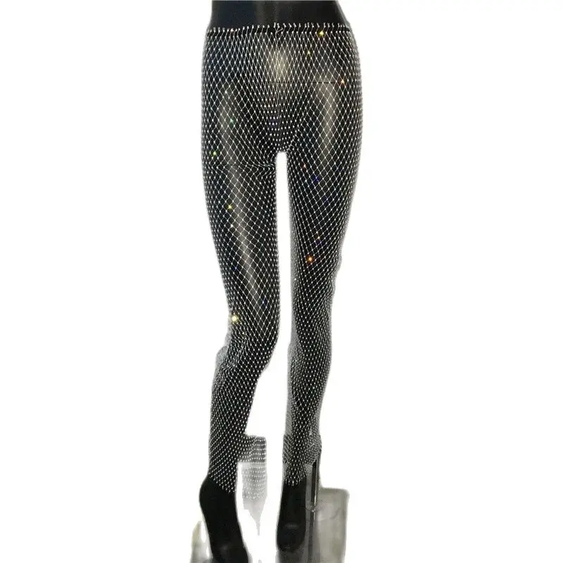 Блестящие женские брюки со стразами, модные эластичные ажурные Брюк...