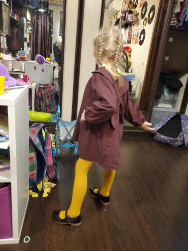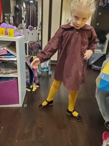 платье конечно прекрасное и качесиво хорошее.но голова моей дочки(очень малнькая ,по средне статистическим меркам) не пролазит в горловину.ну то есть 15 минут мне понадобилось чтобы натянут.ребенку больно.опечалило это очень.буду расшивать.ну и длина на рост 104 примерно впритык.думала будет с запасом .заказывали другое платье размер 6.оно с запасом еще на год точно.или 2. звезды снимаю ,за о что носить без доработок не представляется возможным. з