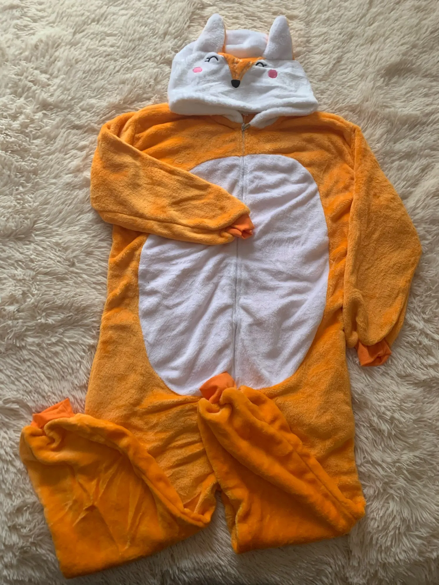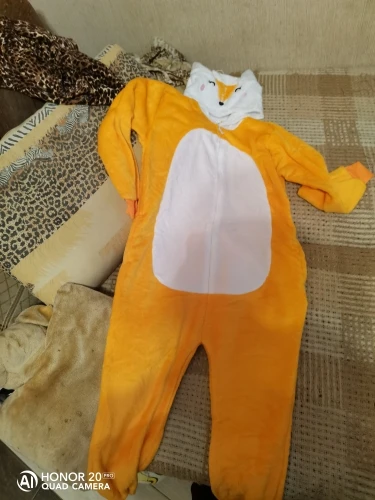 идеальный кигуруми! никаких ниточек и неприятного запаха. идёт в размер, как указано у продавца (у меня 140) это я лишнего дала, ребёнок 125, боялась что маломерит, но за счёт резинок на рукавах и ногах носить можно, как будто в пледе закутана. даже на меня налезает, я 170)