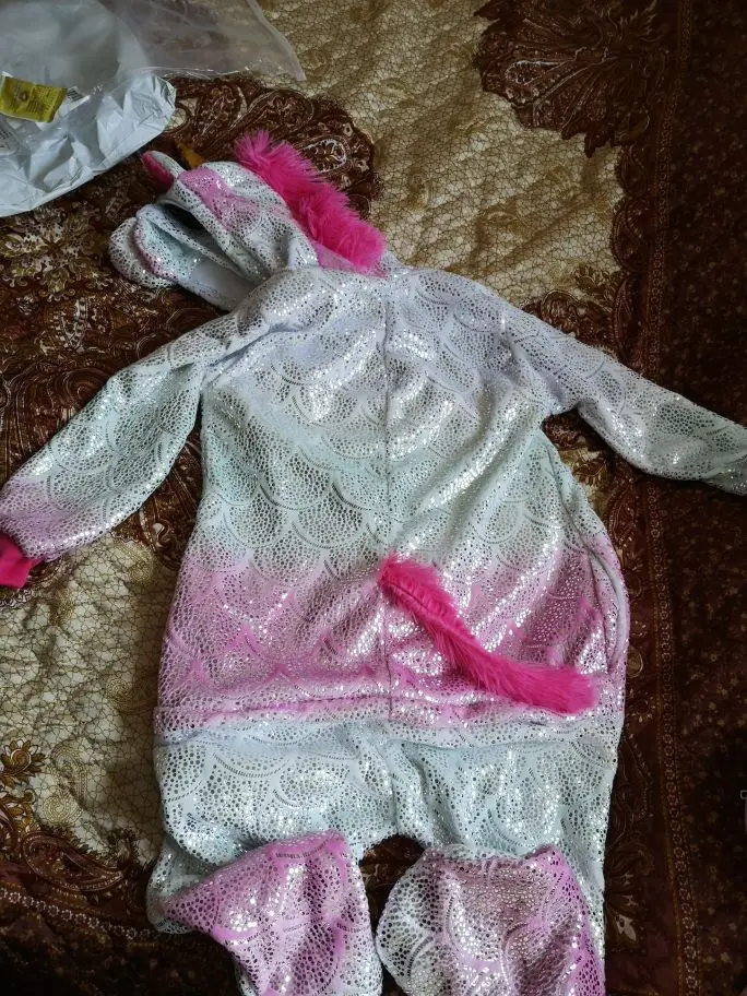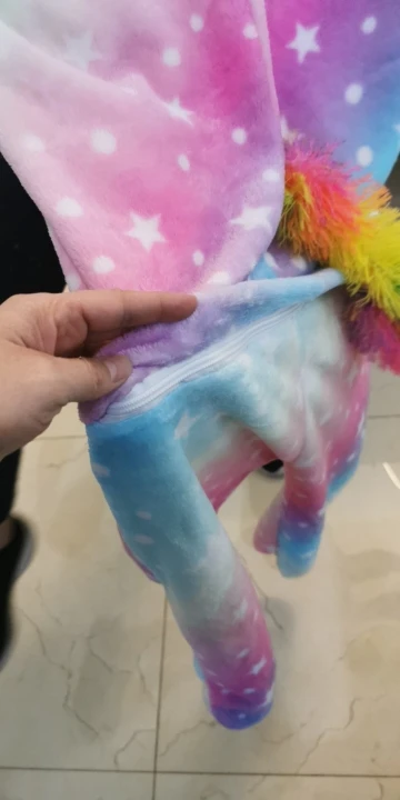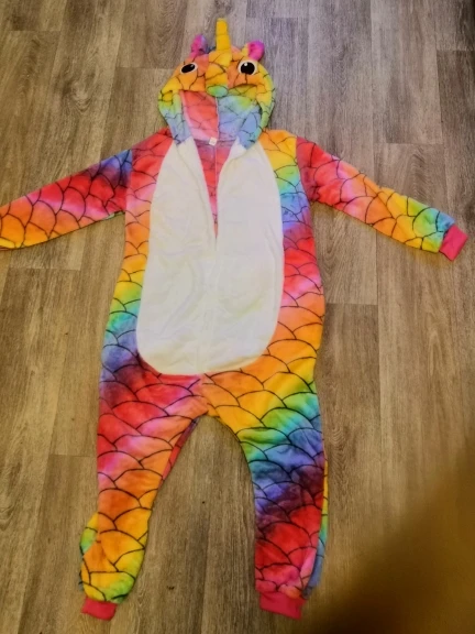 Отличная пижама, покупала в подарок ребёнку. Было пару ниток от оверлога, удалила, надеюсь, ничего не распуститься. Хвостик и грива "жидковаты" жаль, но в целом хорошее впечатление. Примерял 9ти летний сын, в подарок брала на 6,5 лет (очень крупная девочка). Думаю подойдёт
