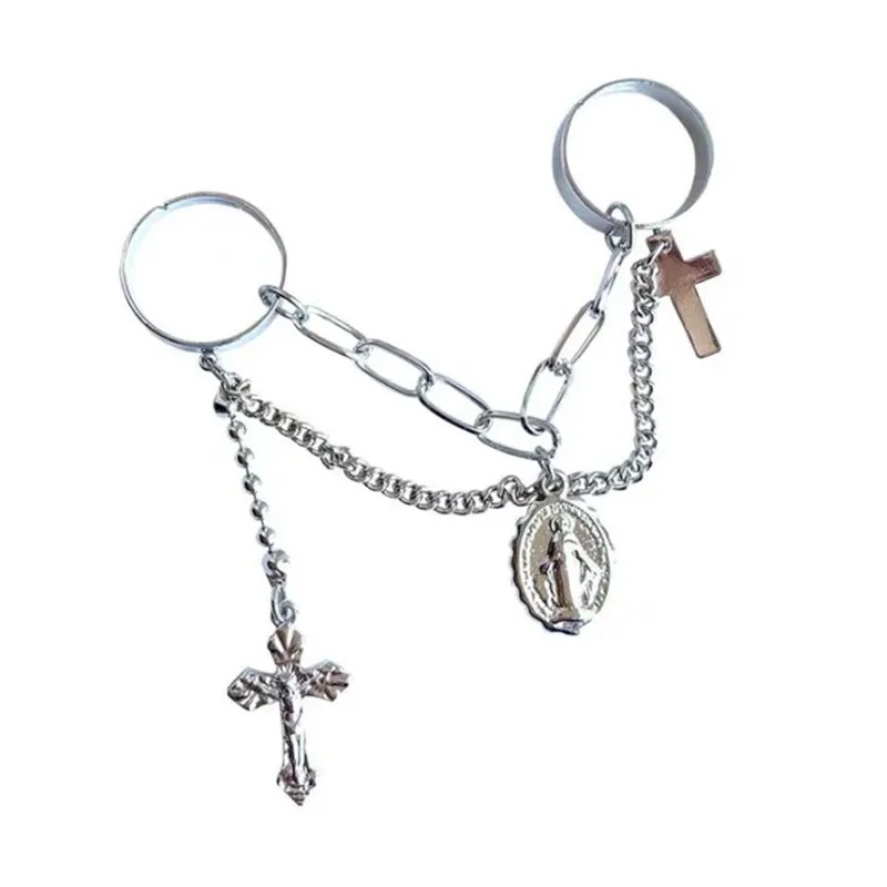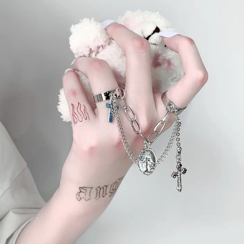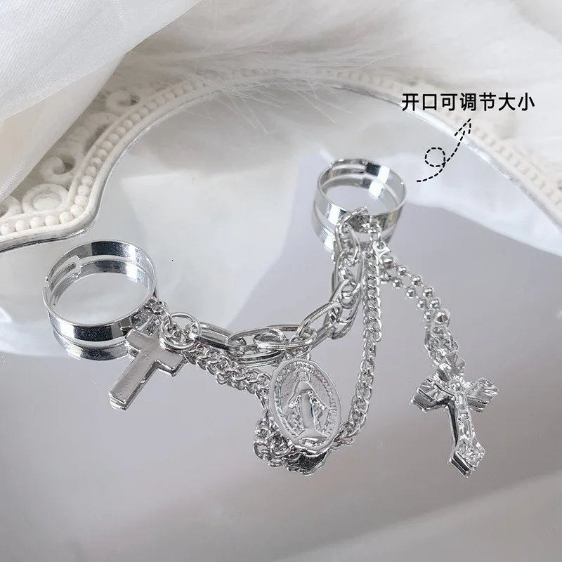 Кольцо с крестом Иисуса, регулируемое, в стиле хип-хоп, индивидуальный стиль панк, Корея, Длинная кисточка, цепочка, для женщин, Мужчин, Ювелирные изделия Вечерние