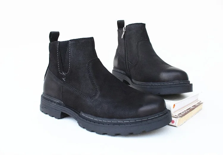 Описание: Это Мужская Рабочая обувь с высоким верхом из шерсти и хлопка, ткань из коровьей кожи (будьте внимательны: верх не замша, матовая шкура скота, технологичная текстура слегка матовой поверхности); Внутренняя стелька-это сочетание овчины и шерсти (включая положение носка, Также кожа шерсть). Подошва из мягкой резины и толстой подошвы, каблук толщиной 3 см, высота задника составляет около 12 см. Хороший кожаный материал., это очень толстая цельная шерстяная подкладка из коровьей кожи и овчины; Подошва толстая, нескользящая резиновая подошва, глубокая зубчатая поверхность и хороший Противоскользящий эффект, теплые короткие ботинки с высоким верхом для мужской обуви, внутри молния для легкого надевания и снятия.