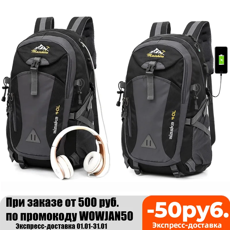 40L водонепроницаемый походный спортивный рюкзак USB для альпинизма...