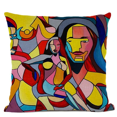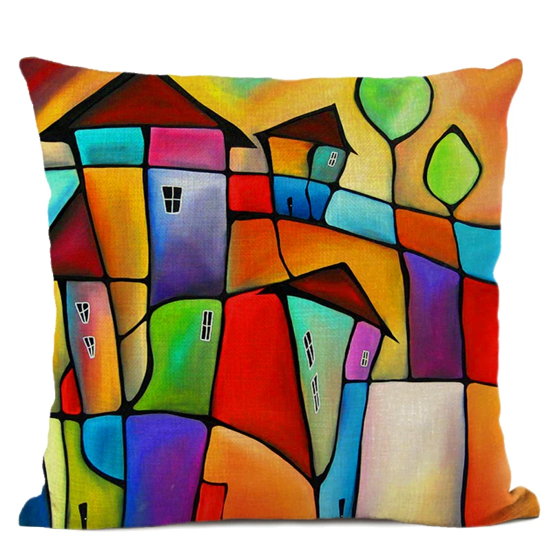 Набор подушек с абстрактной картиной маслом в европейском ретро стиле, домашний декор, льняная наволочка, декоративные подушки