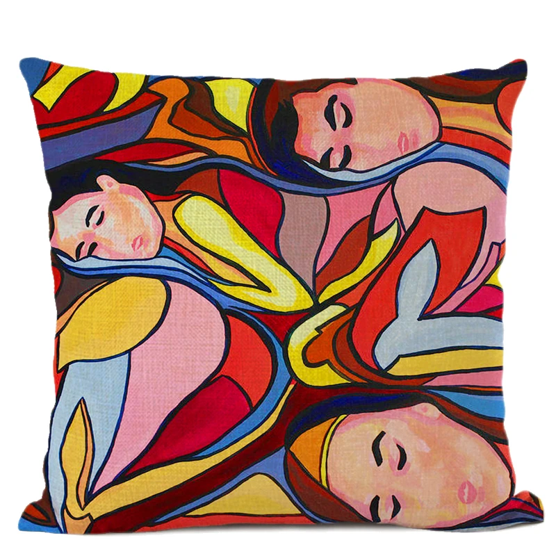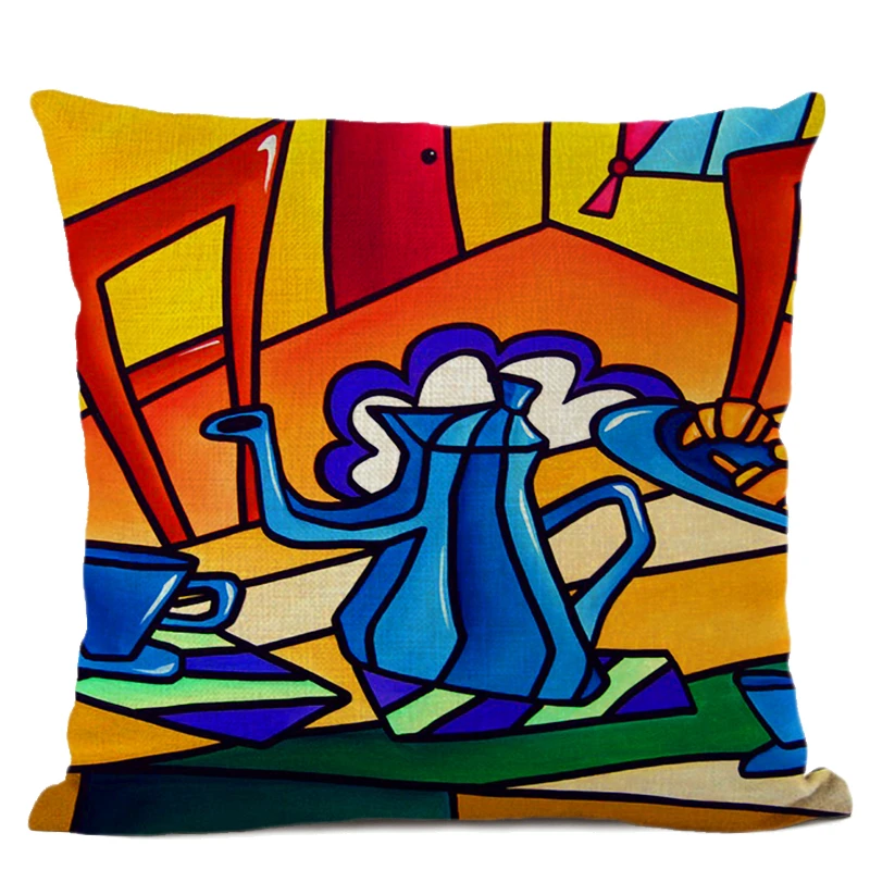 Набор подушек с абстрактной масляной росписью в европейском ретро стиле с принтом, домашний декор, льняная наволочка, Cojines Decorativos Para Sof