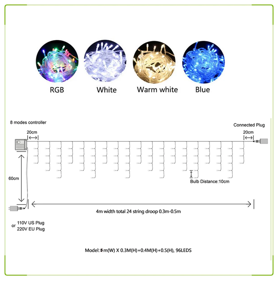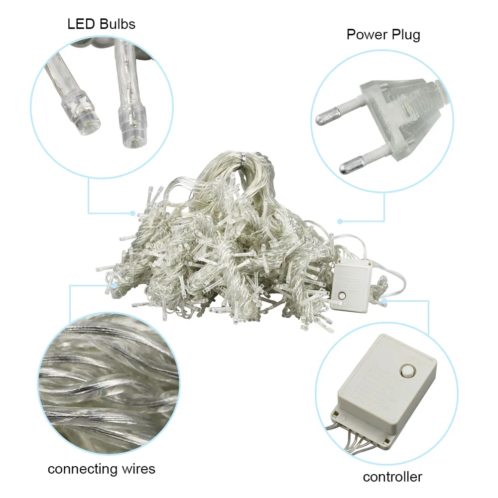 6 м X 3 м 600 Светодиодная Рождественская гирлянда для свадьбы, вечеринки, сосульки, занавески, уличные праздничные украшения для помещений