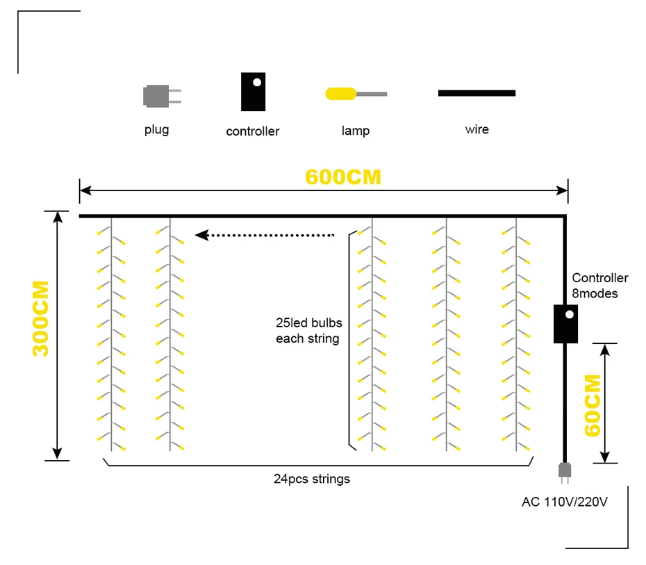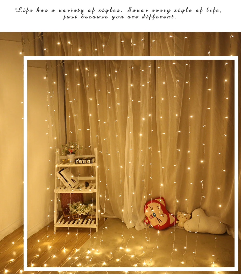 Светодиодная гирсветильник-занавеска на окна, 300 светодиодов