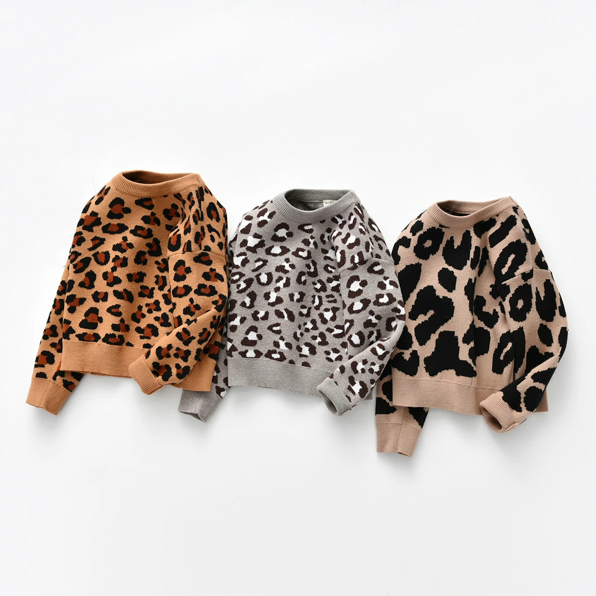 Детские свитера для маленьких мальчиков, вязаный пуловер с леопардовым принтом, Повседневные детские топы с длинным рукавом, одежда для маленьких мальчиков, одежда для маленьких девочек