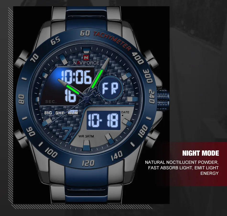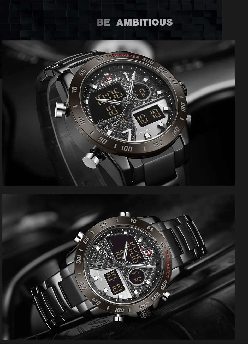 Часы NAVIFORCE мужские, армейские, спортивные, светодиодный, цифровые, водонепроницаемые, со стальным ремешком, 2019