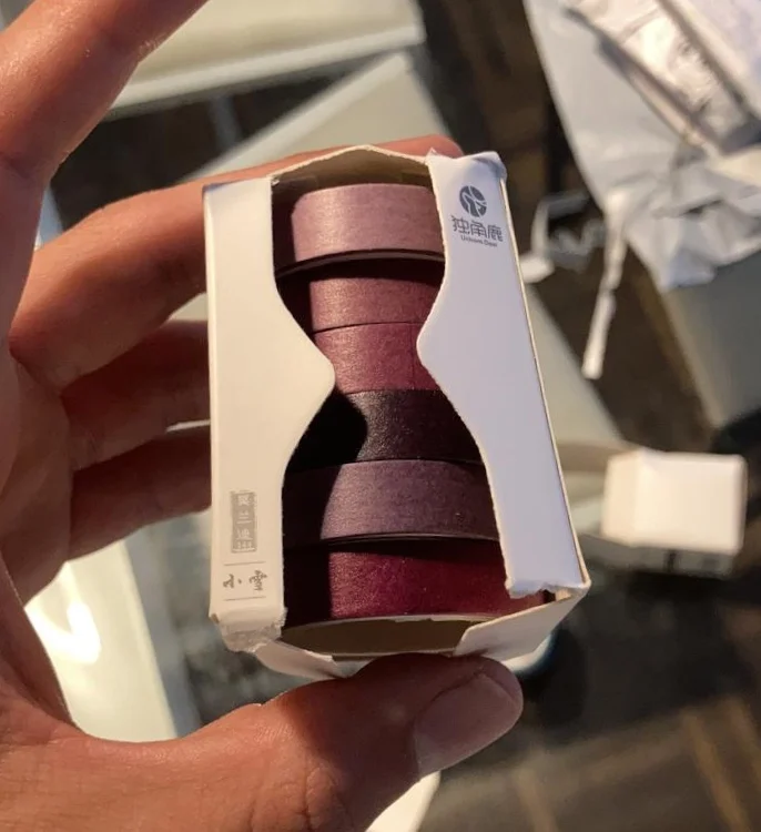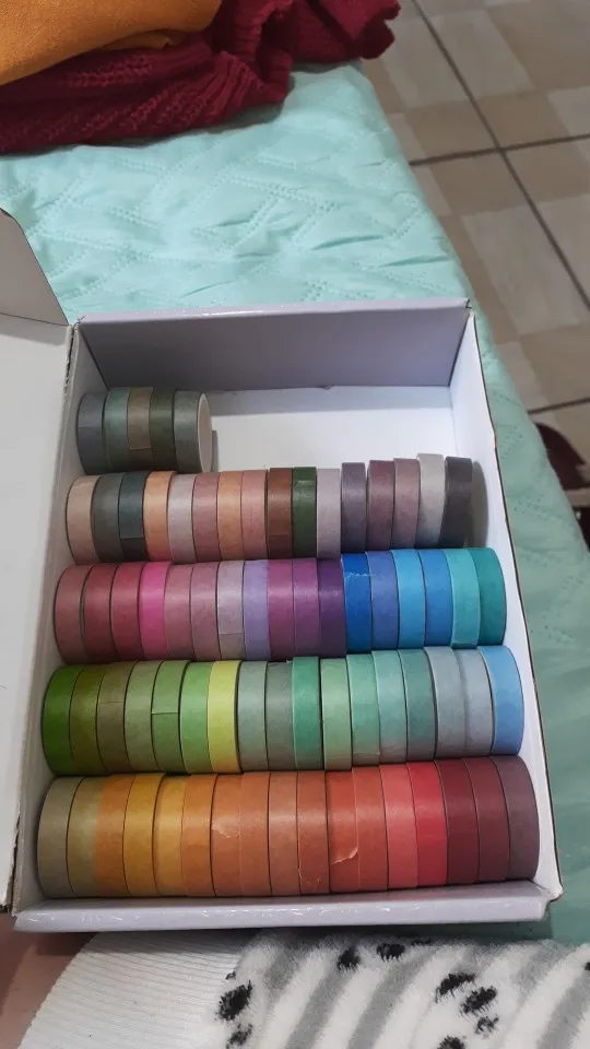 лента тонкая, на бумаге цвета видны не так ярко, как на картинке. возможно другие, более яркие наборы, на бумаге выглядели бы пастельно. а этот набор выглядит как немного подкрашенный белый. но бумагу он держит хорошо, и отклеивается тоже хорошо, не отдирая куски бумаги. шли примерно 20 дней.