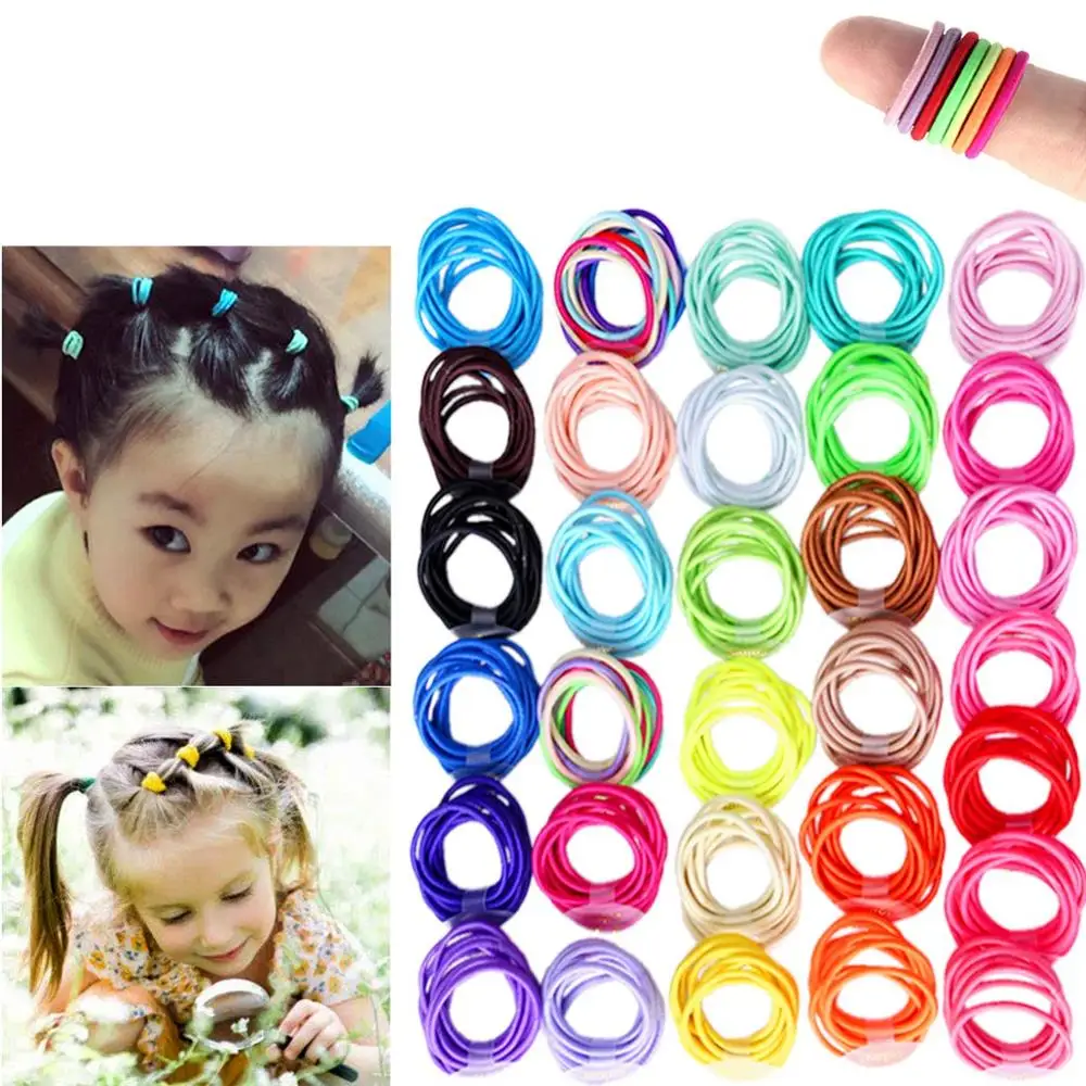 Разноцветные резинки для волос, 300 шт., 2 см, без складки, для маленьких девочек