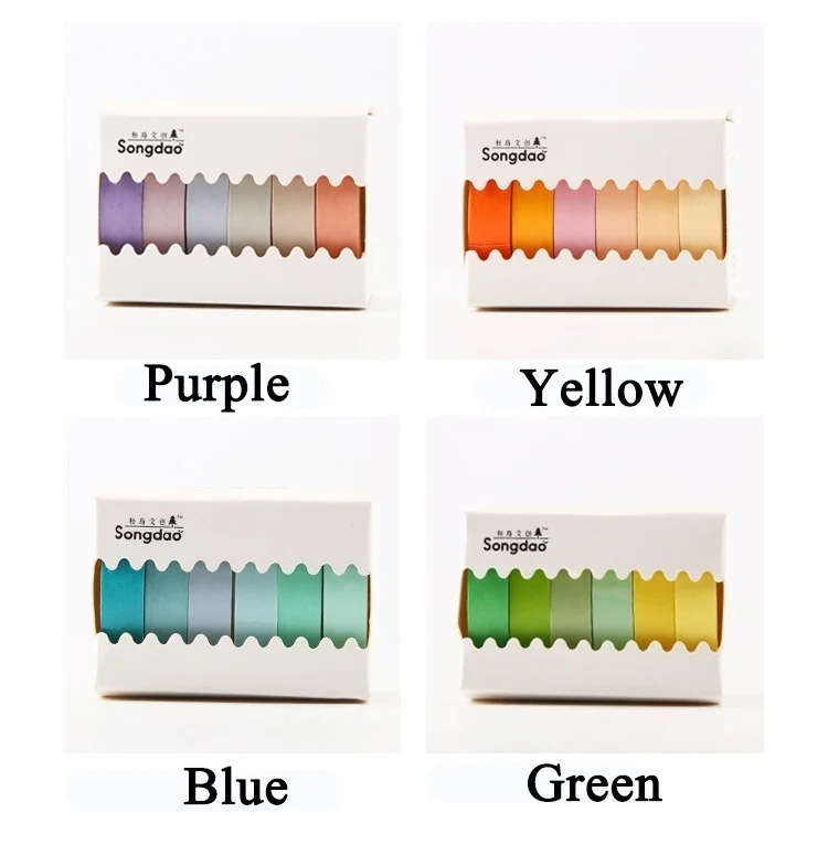 6 шт.компл. многоцветная Милая декоративная клейкая лента, однотонн...