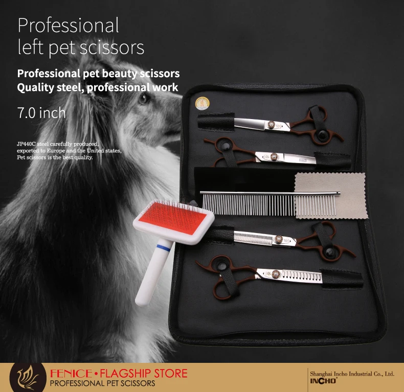 Fenice 7,0 дюймов левосторонние ножницы для стрижки собак, филировочные изогнутые ножницы, набор ножниц для стрижки собак, набор ножниц