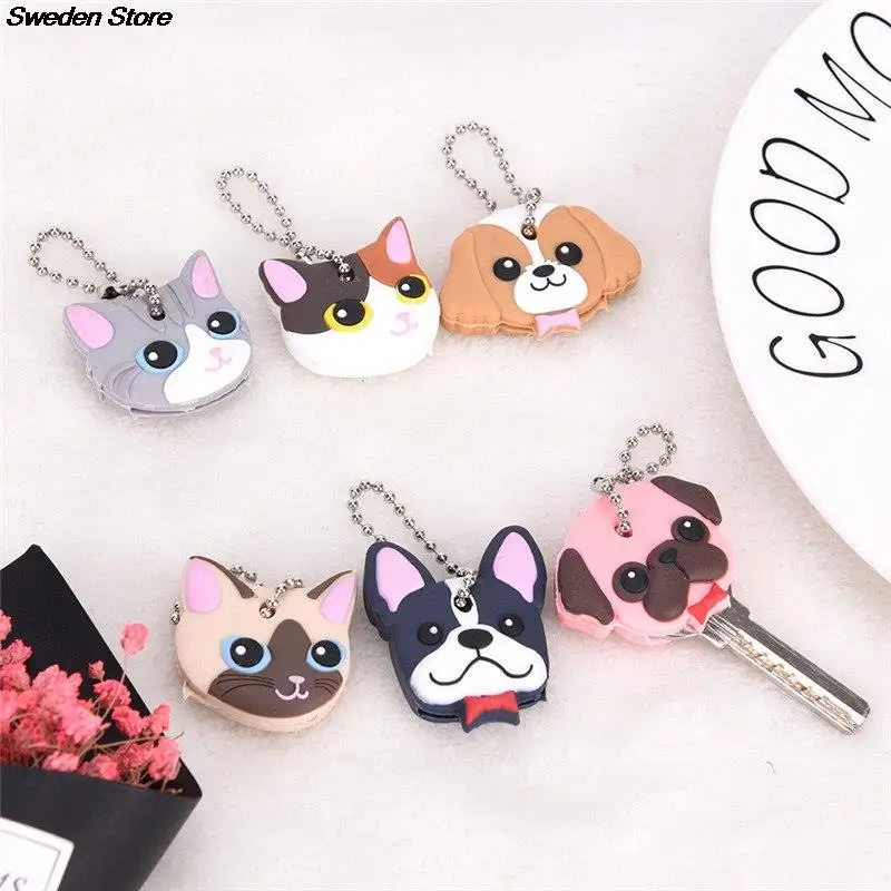 Милое кольцо в форме ключа с животными, силиконовая крышка для головы, чехол для ключей, брелок, ювелирный подарок, хит продаж