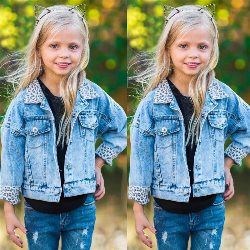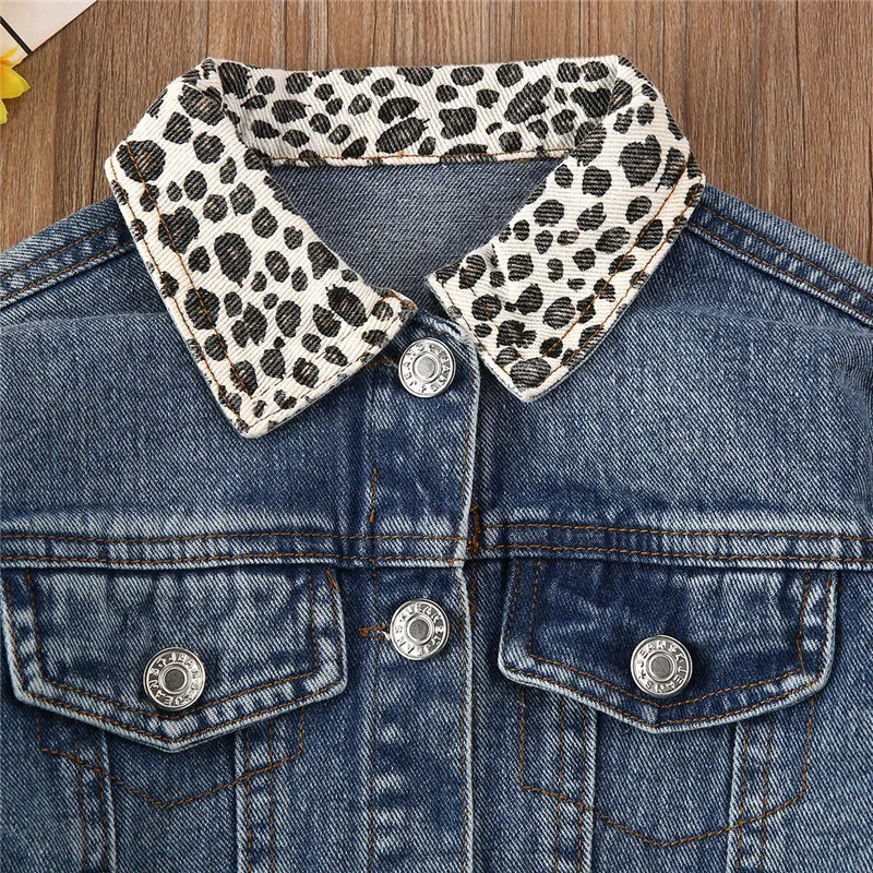 Осеннее пальто Джинсовая куртка для маленьких девочек Детская осенняя теплая верхняя одежда с длинными рукавами для девочек детское модное пальто Джинсовая куртка с леопардовым принтом!