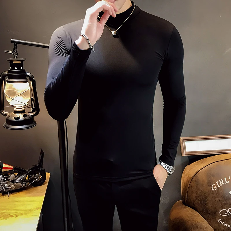 Мужская водолазка с коротким рукавом, облегающая однотонная черная ...