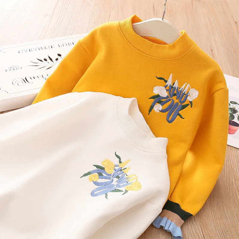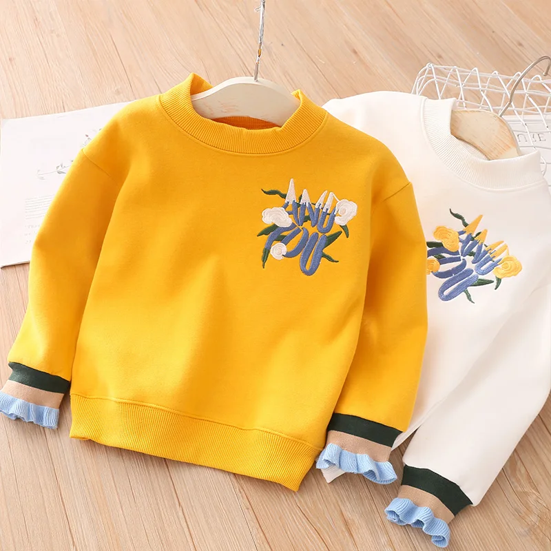 Толстовка детская, на осень-зиму, с начесом, с цветочным узором, для девочек 3-8, 2021